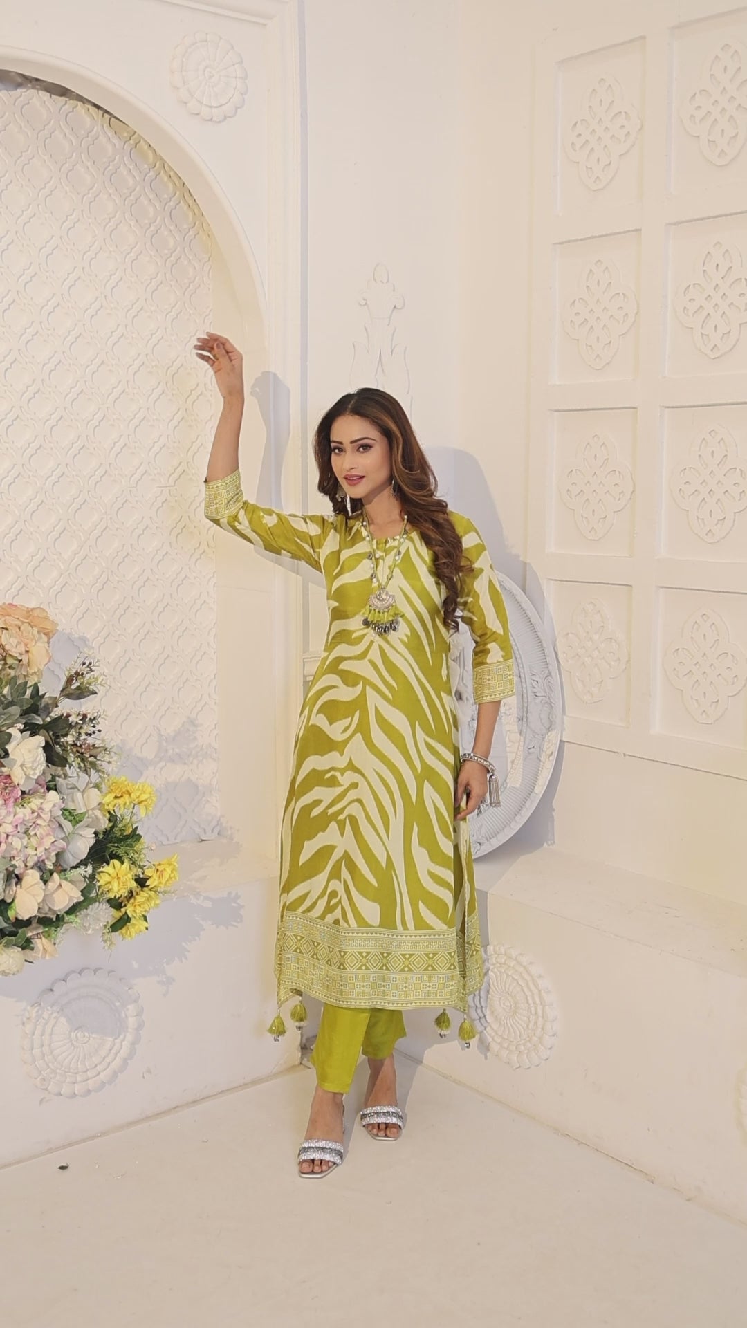 Lime Green Embellished Shimmer Tissue Silk Palazzo Set