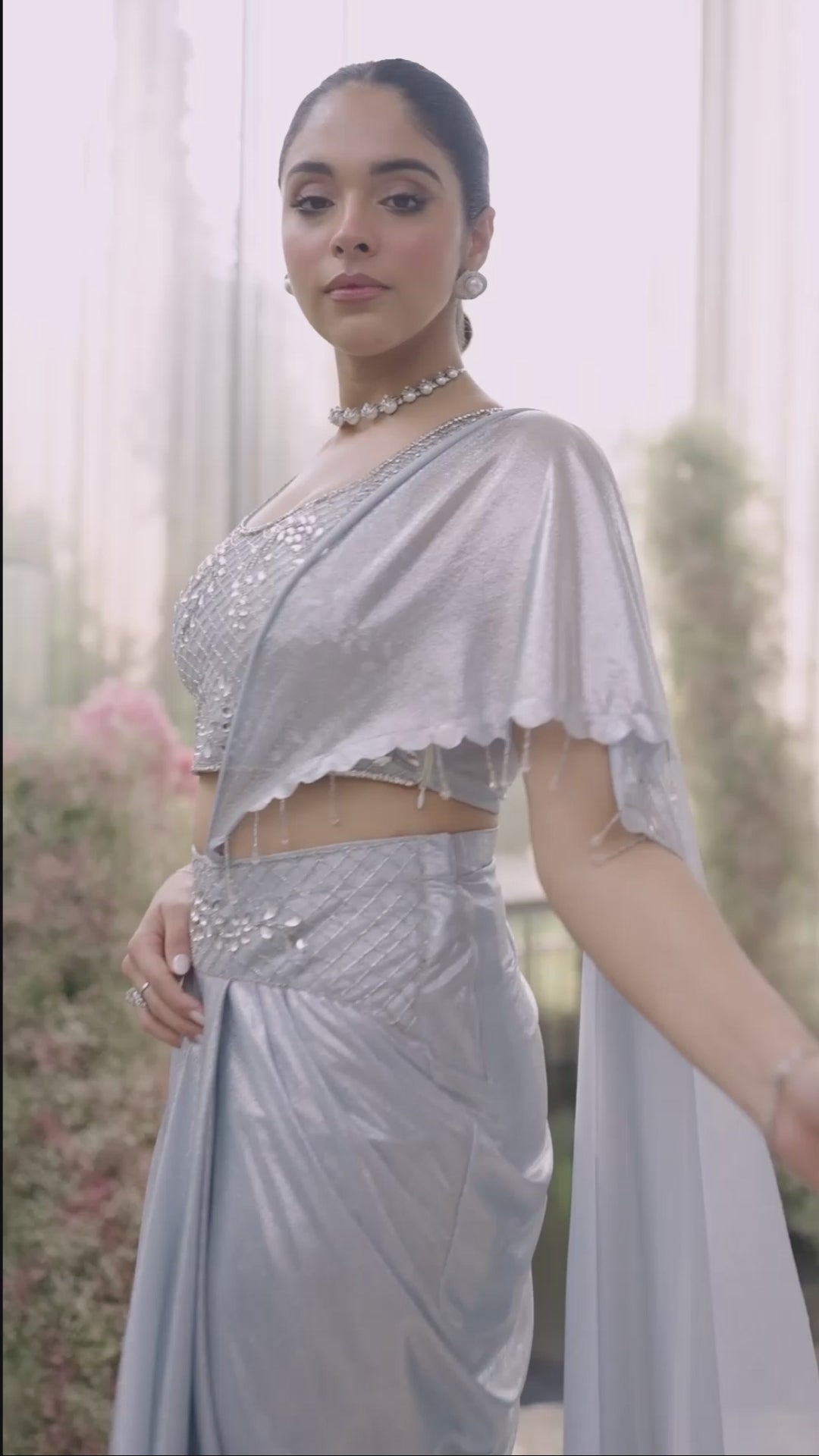Festive Pink Embellished Cape Set