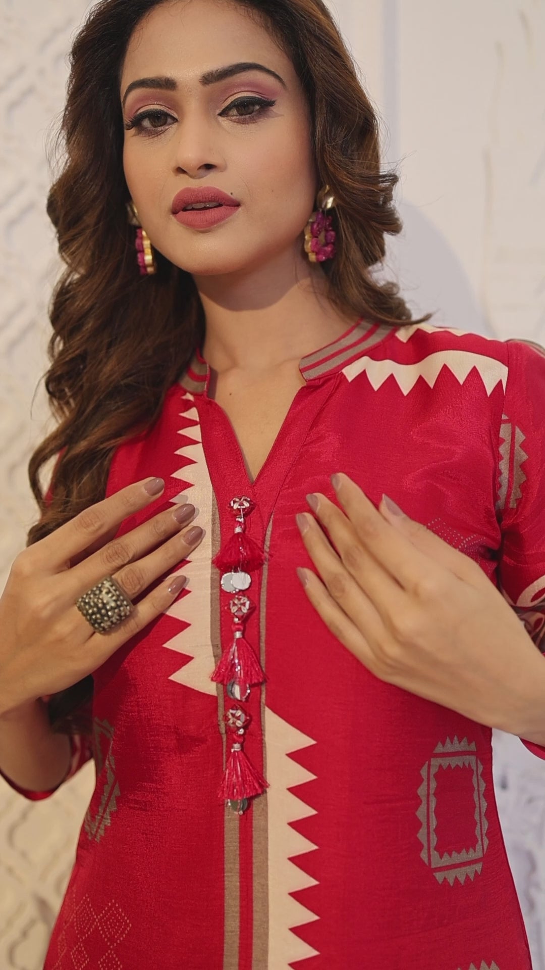 Vibrant Red Embellished Raw Silk Palazzo Set