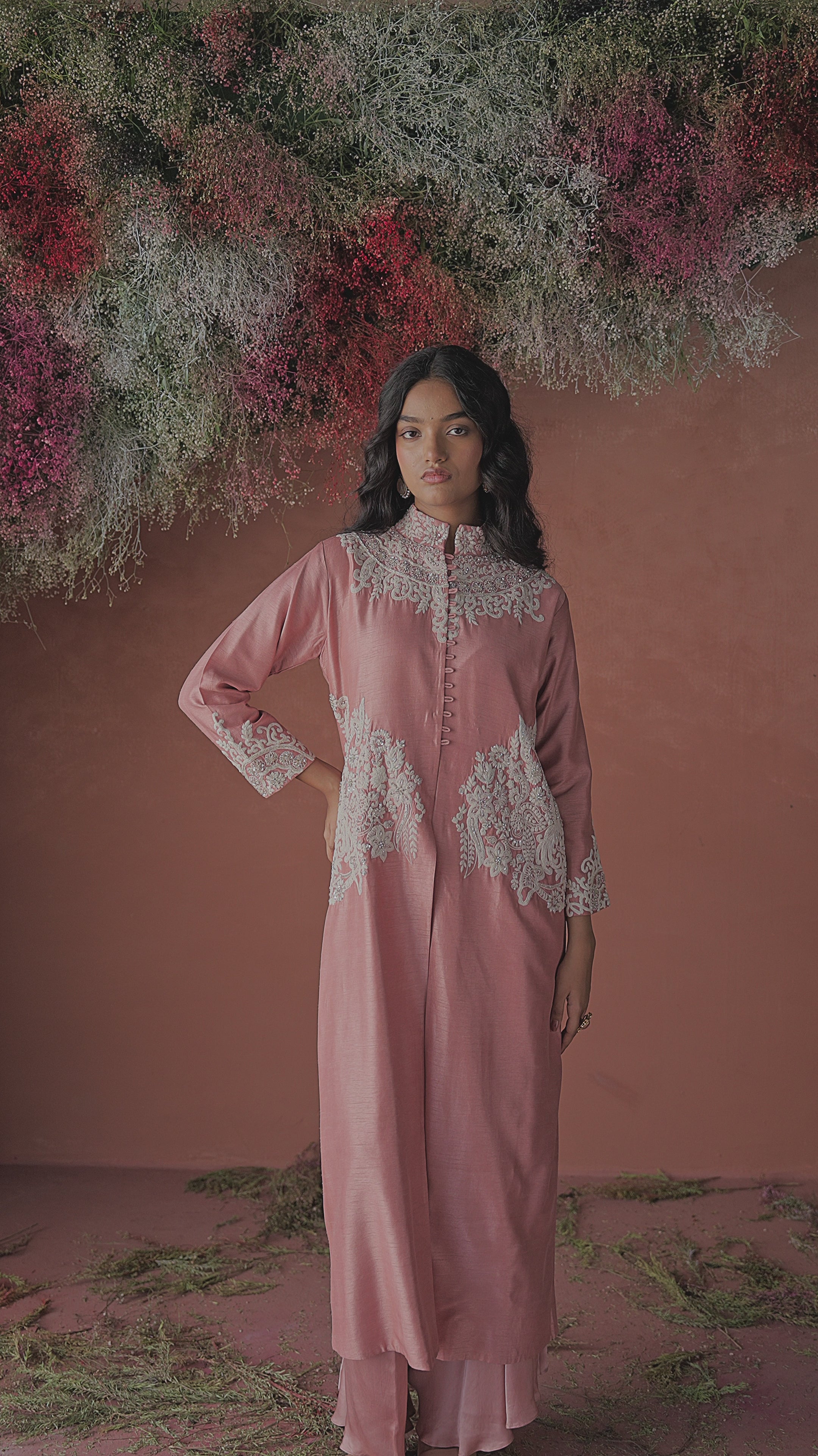 Dusty Pink Embellished Satin Silk Co-Ord Set