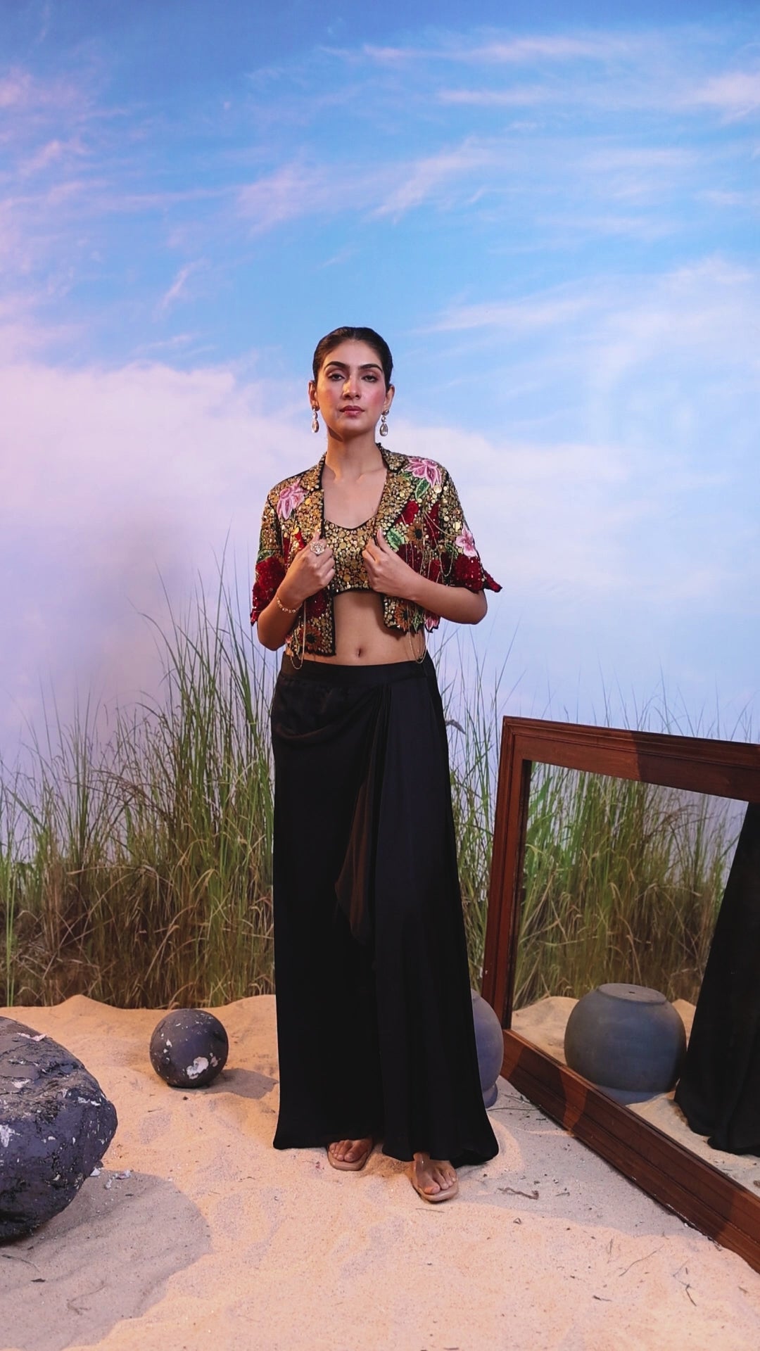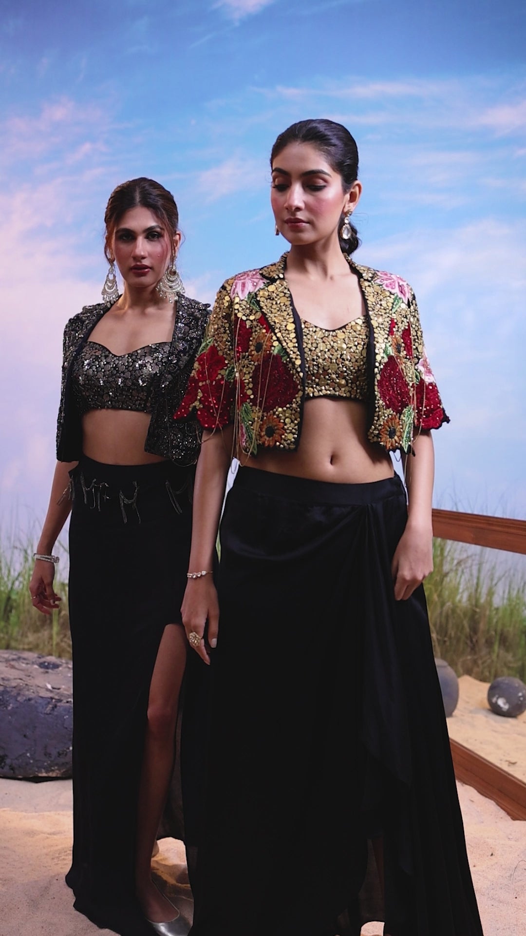 Multi-Color Embellished Shimmer Tissue Silk Palazzo Set