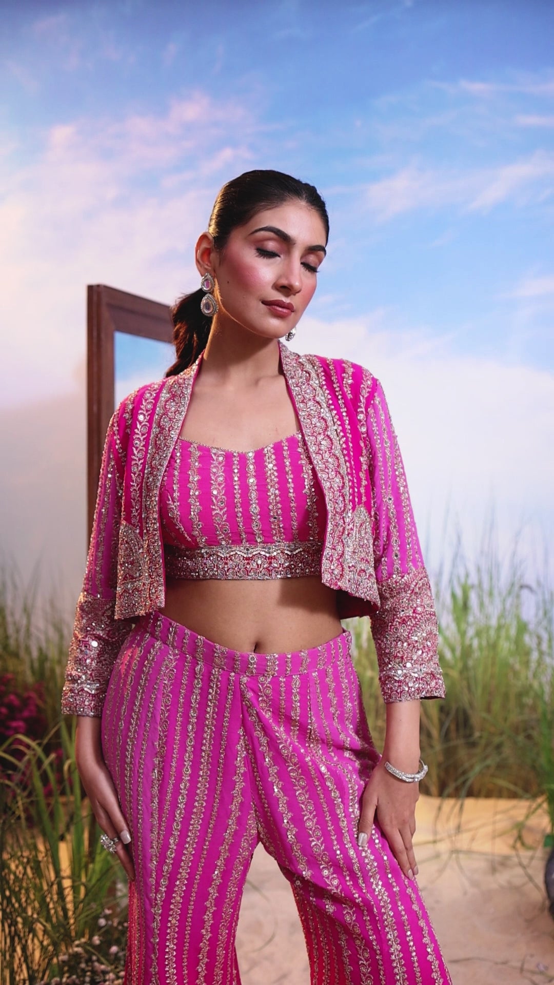 Rich Red Embellished Crepe Silk Palazzo Jacket Set