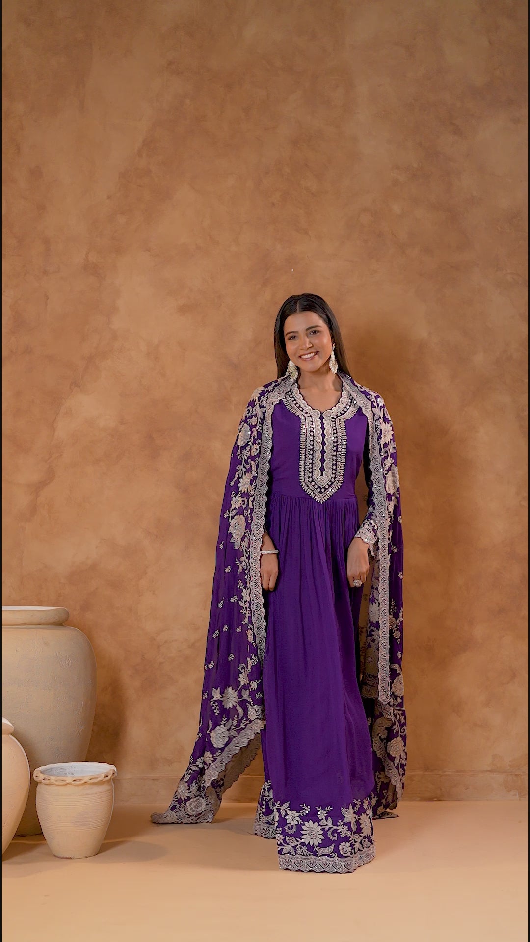 Sold outSave ₹ 3,000.00Deep Royal Purple Embellished Georgette Silk Anarkali Set