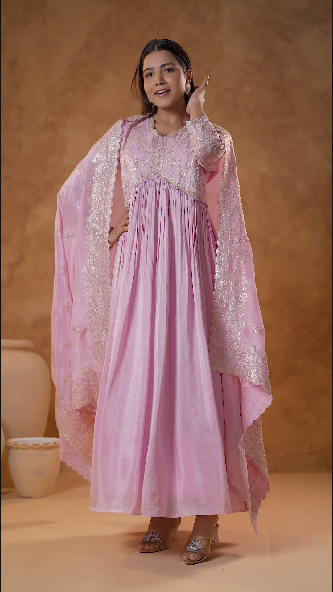 Save ₹ 11,318.00Soft Pink Embellished Tissue Silk Anarkali Set