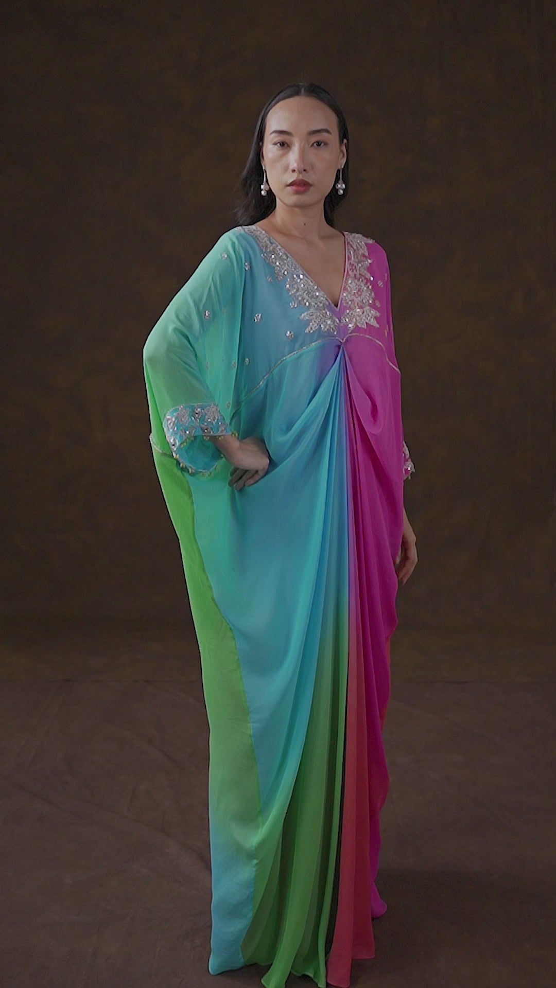 Rainbow Ombre Chinon Silk Full Kaftan
