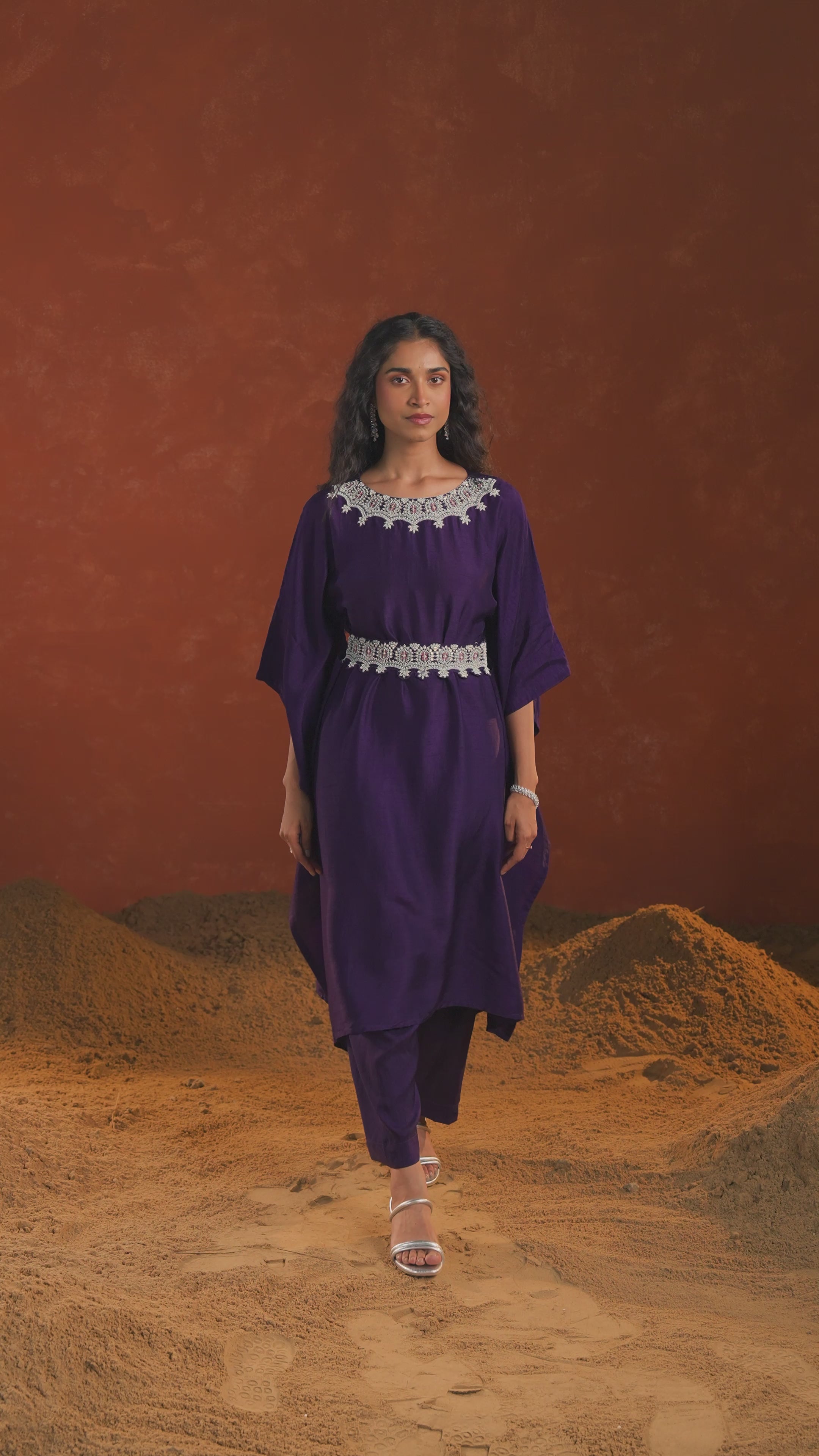 Imperial Purple Embellished Raw Silk Kaftan Set