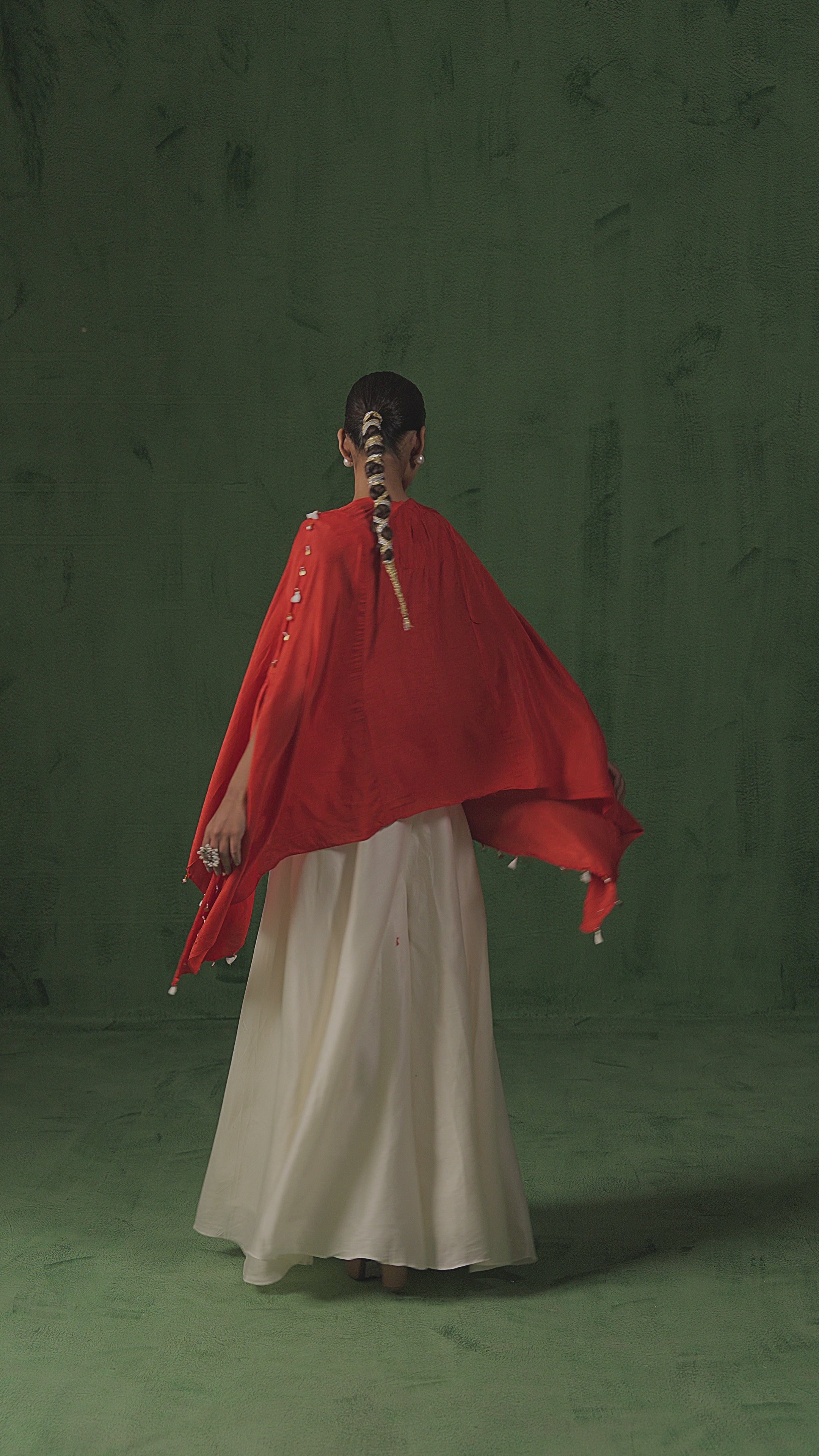 Red Embellished Premium Silk Kaftan Set