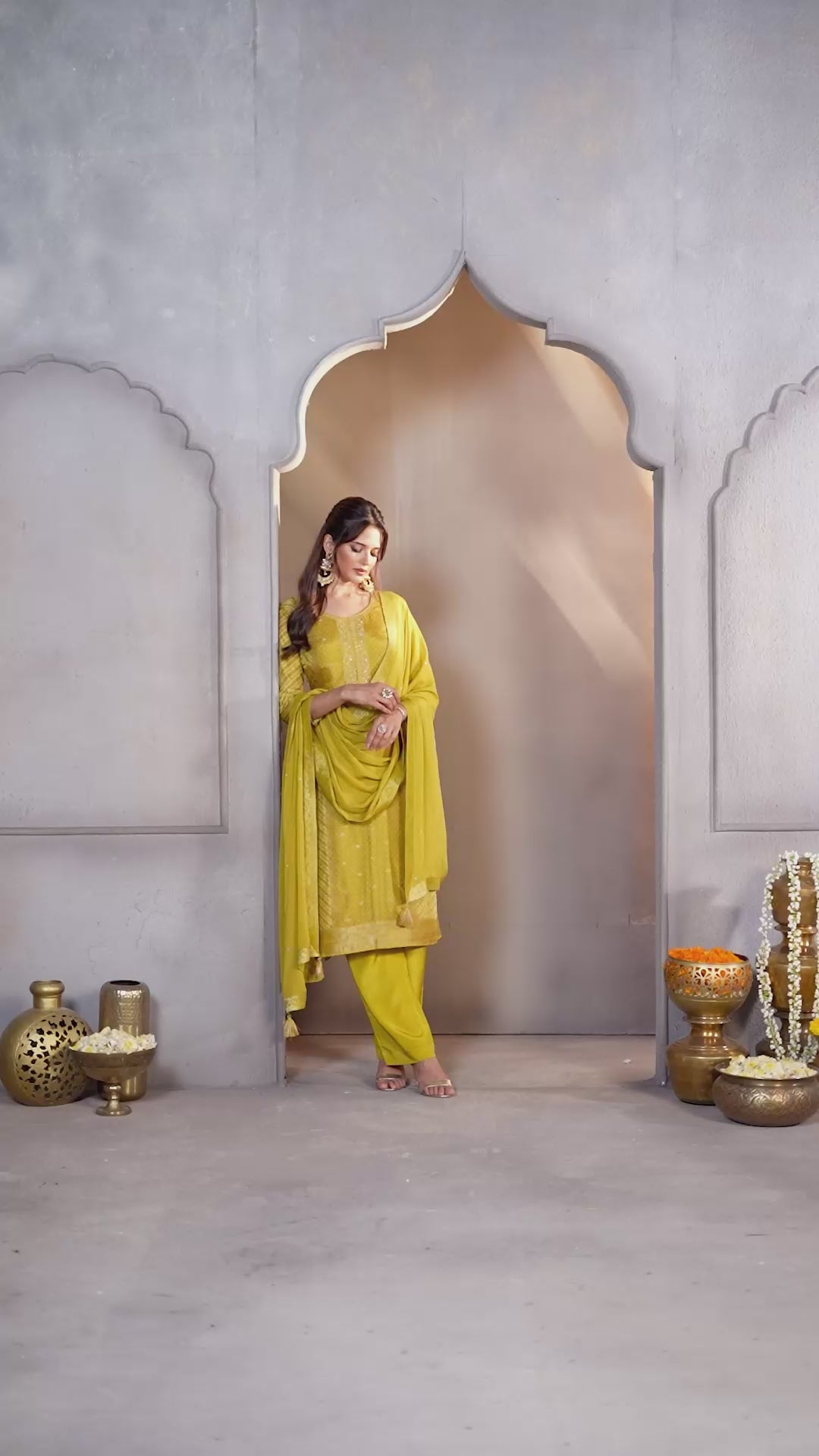 Golden Mustard Embroidered Crushed Tissue Silk Pant Set