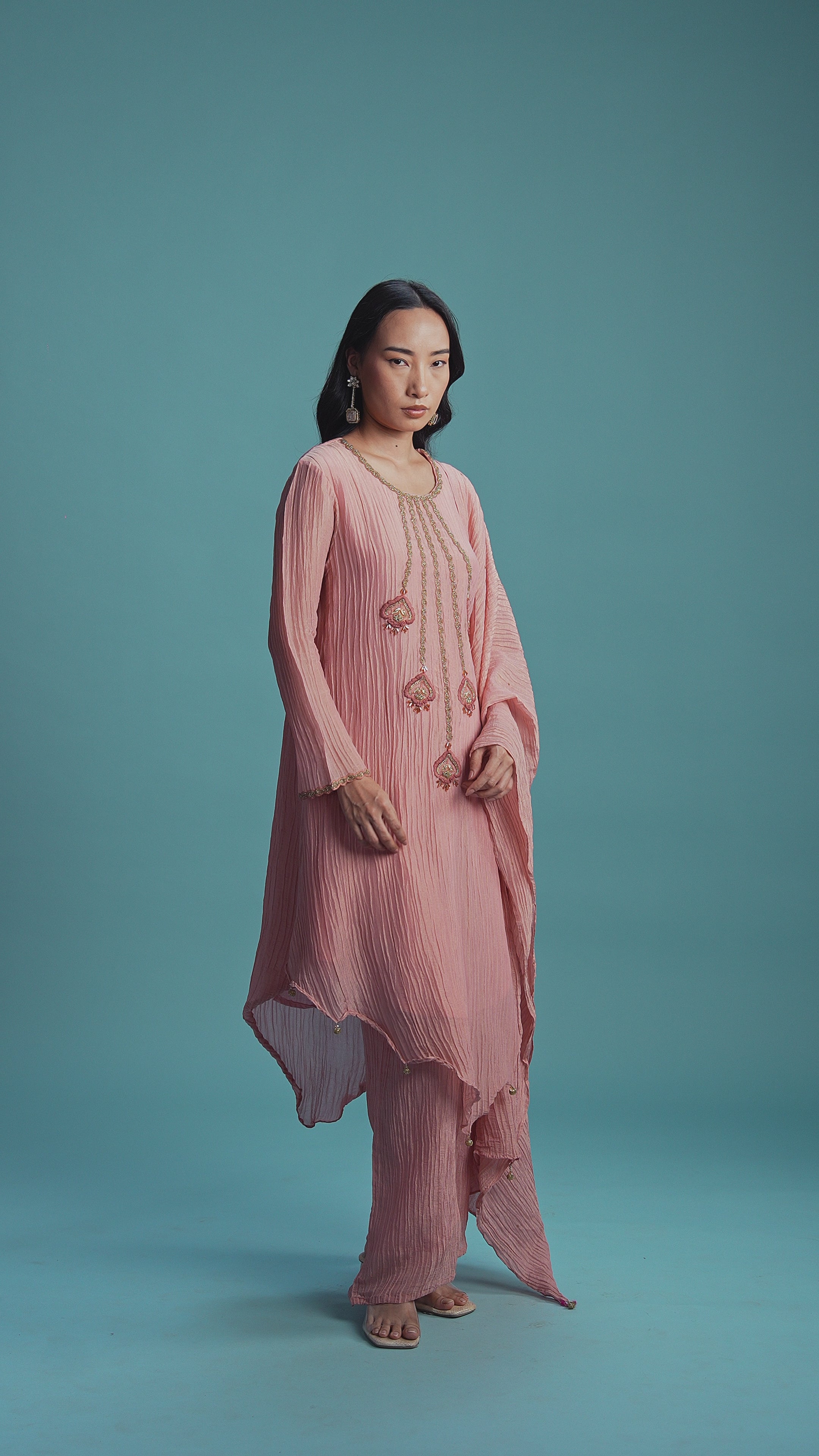 Rose Pink Embellished Shimmer Tissue Silk Pant Set