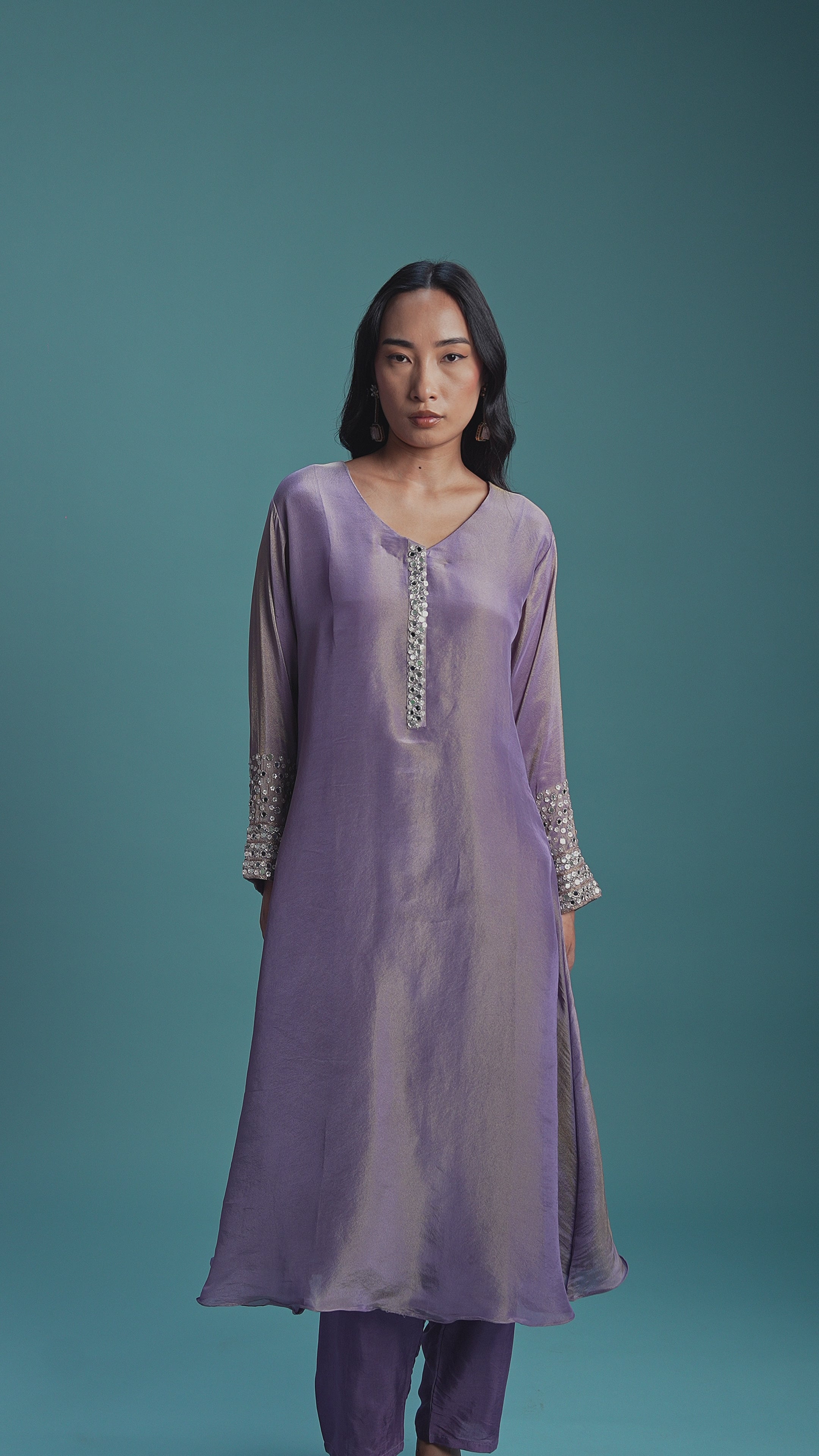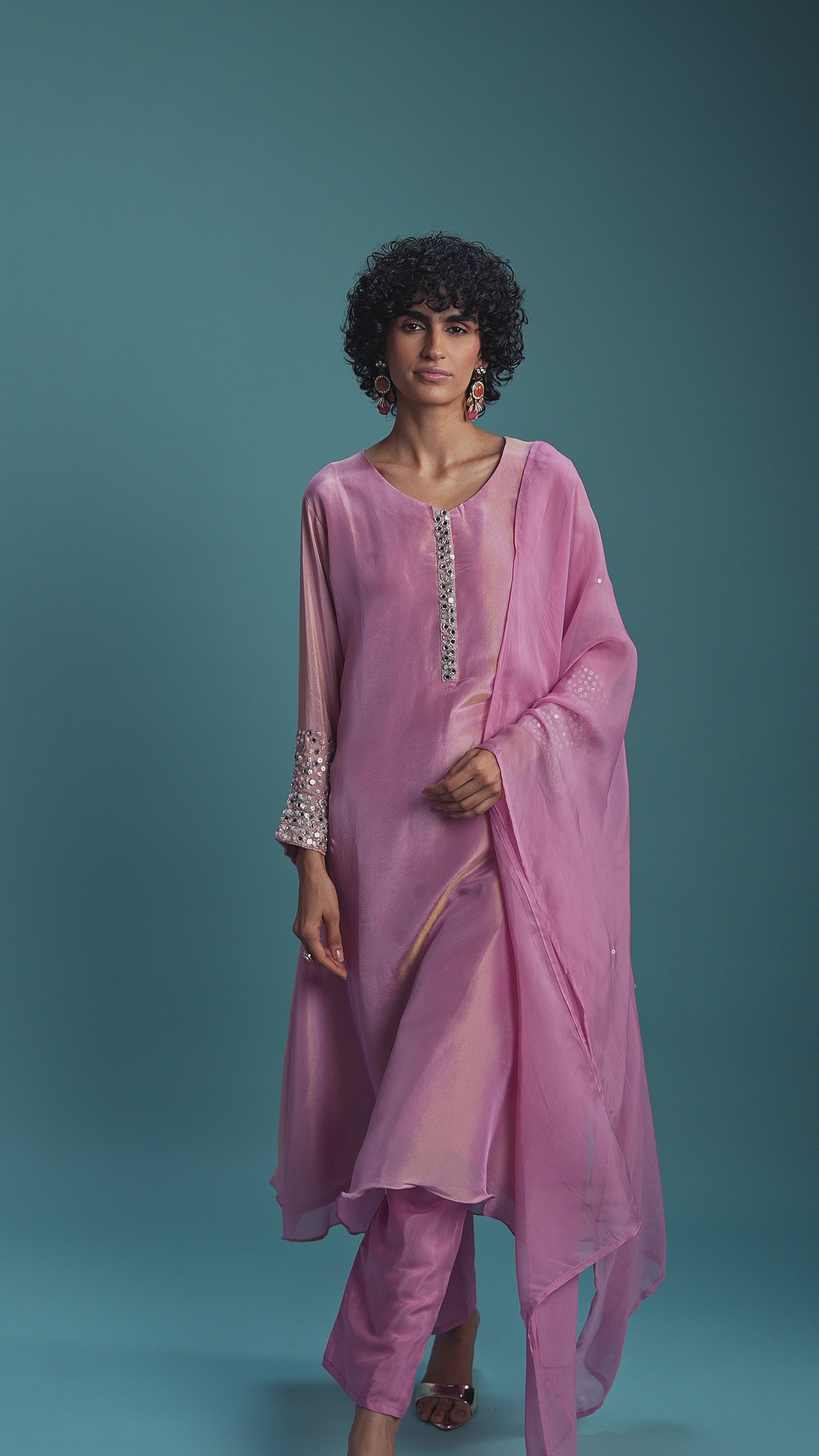 Mauve Glow Embellished Shimmer Tissue Silk Pant Set