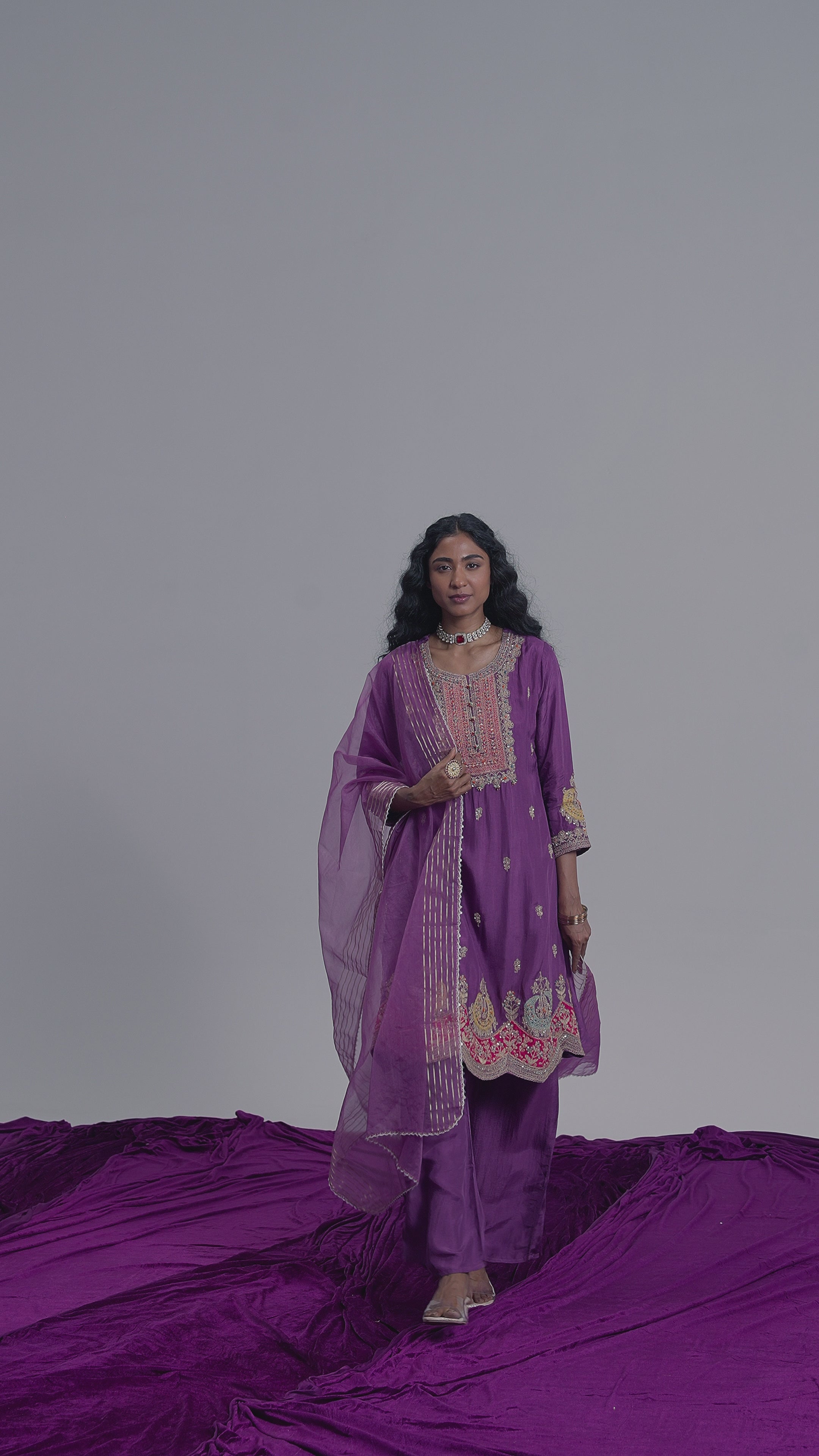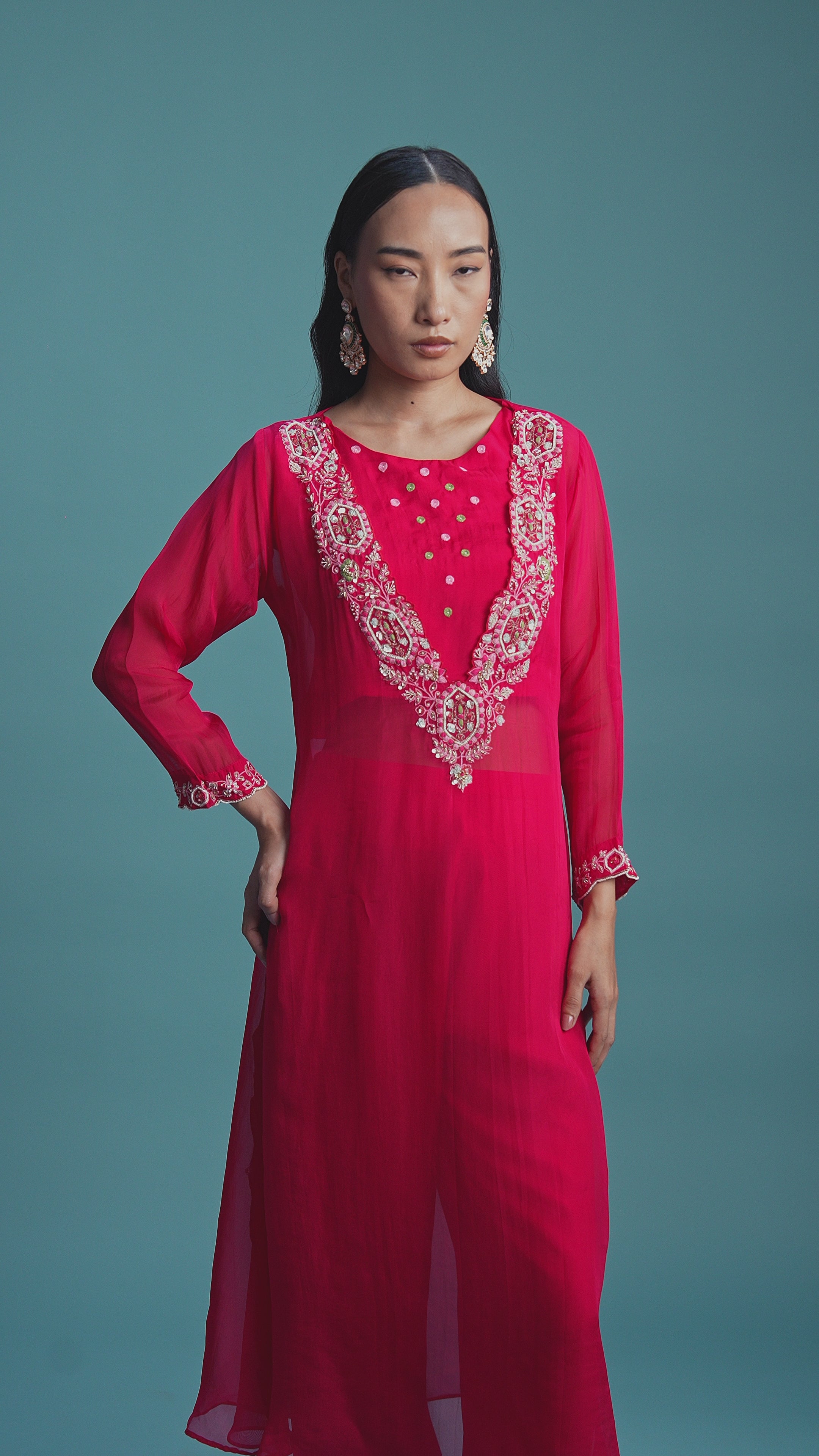 Raspberry Pink Embellished Soft Organza Silk Pant Set