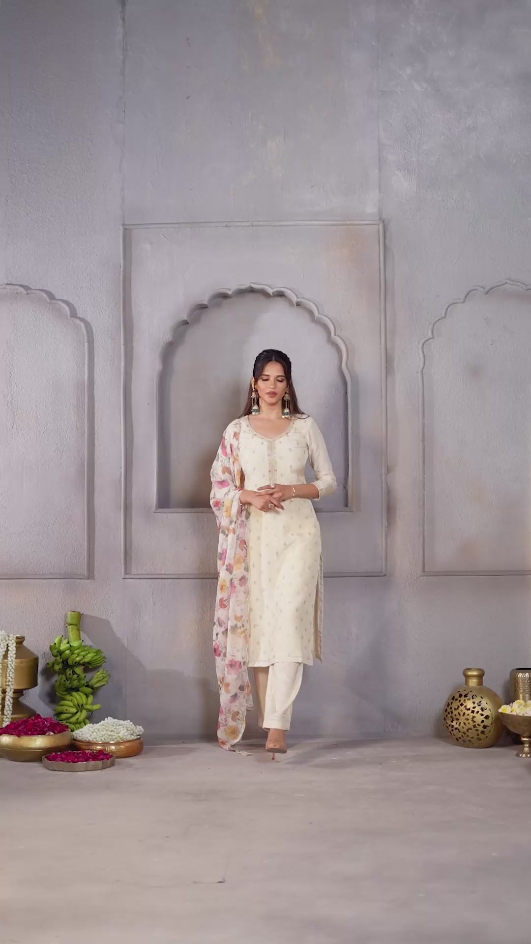 Ivory Embroidered Mul-Chanderi Silk Pant Set
