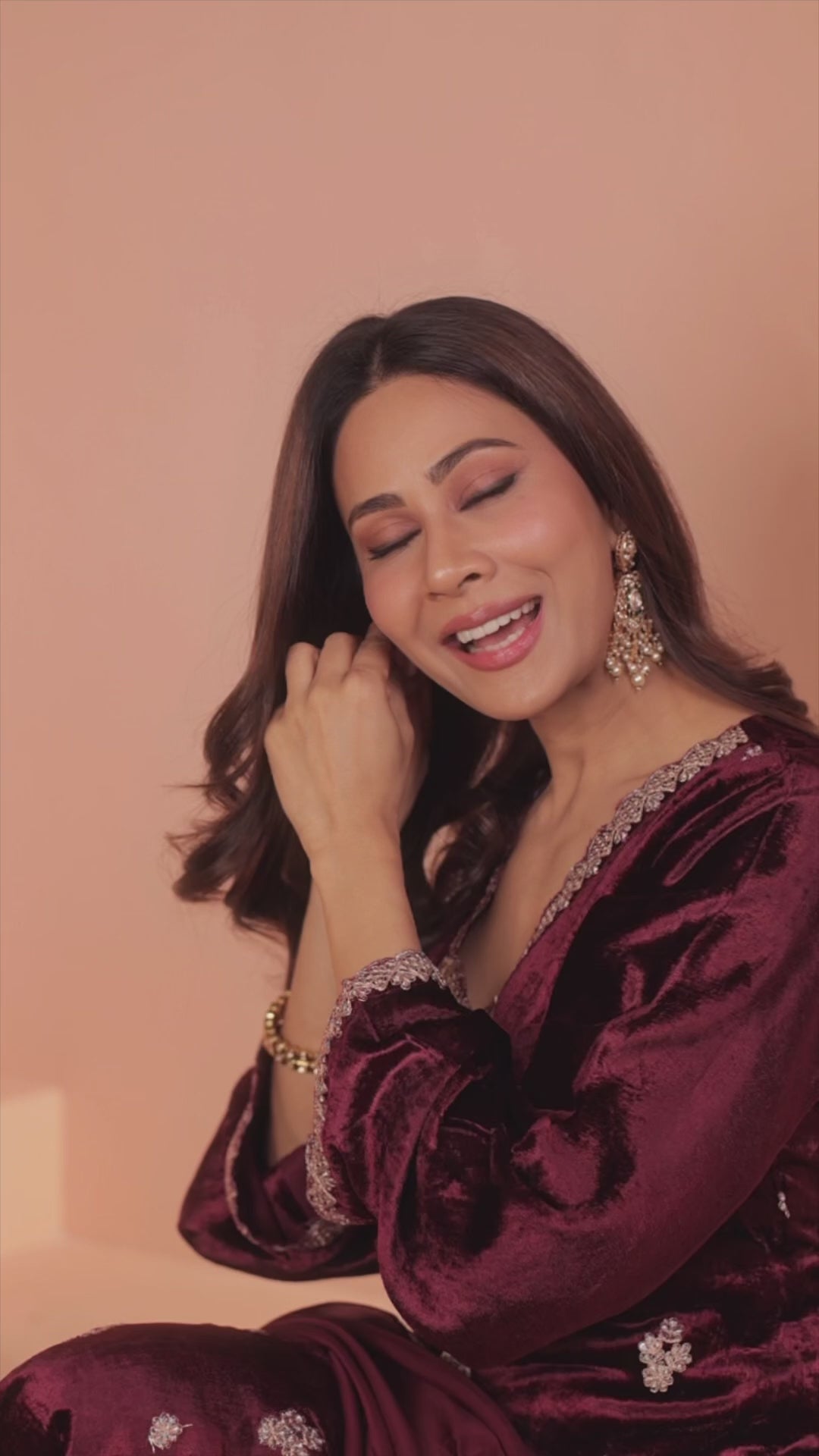 Deep Wine Embellished Premium Velvet Pant Set