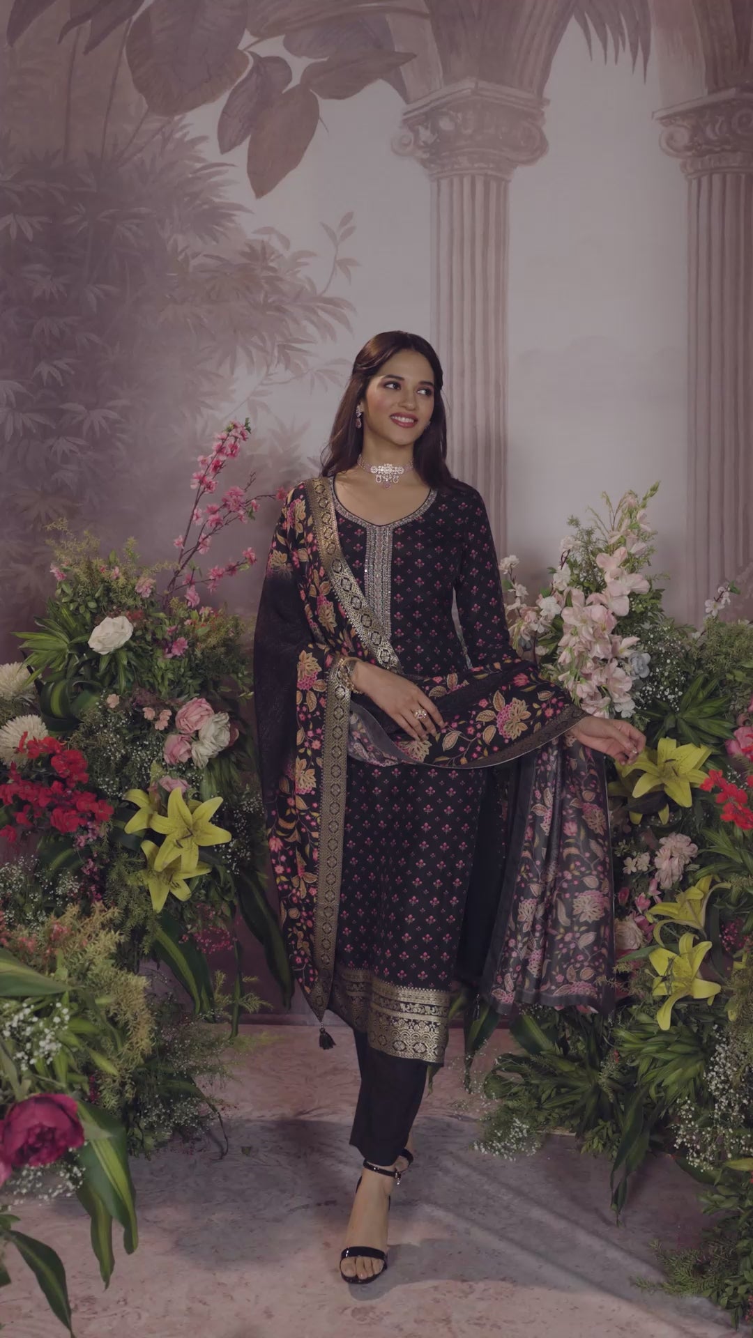 Embroidered Maroon & Charcoal Lawn Pant Set