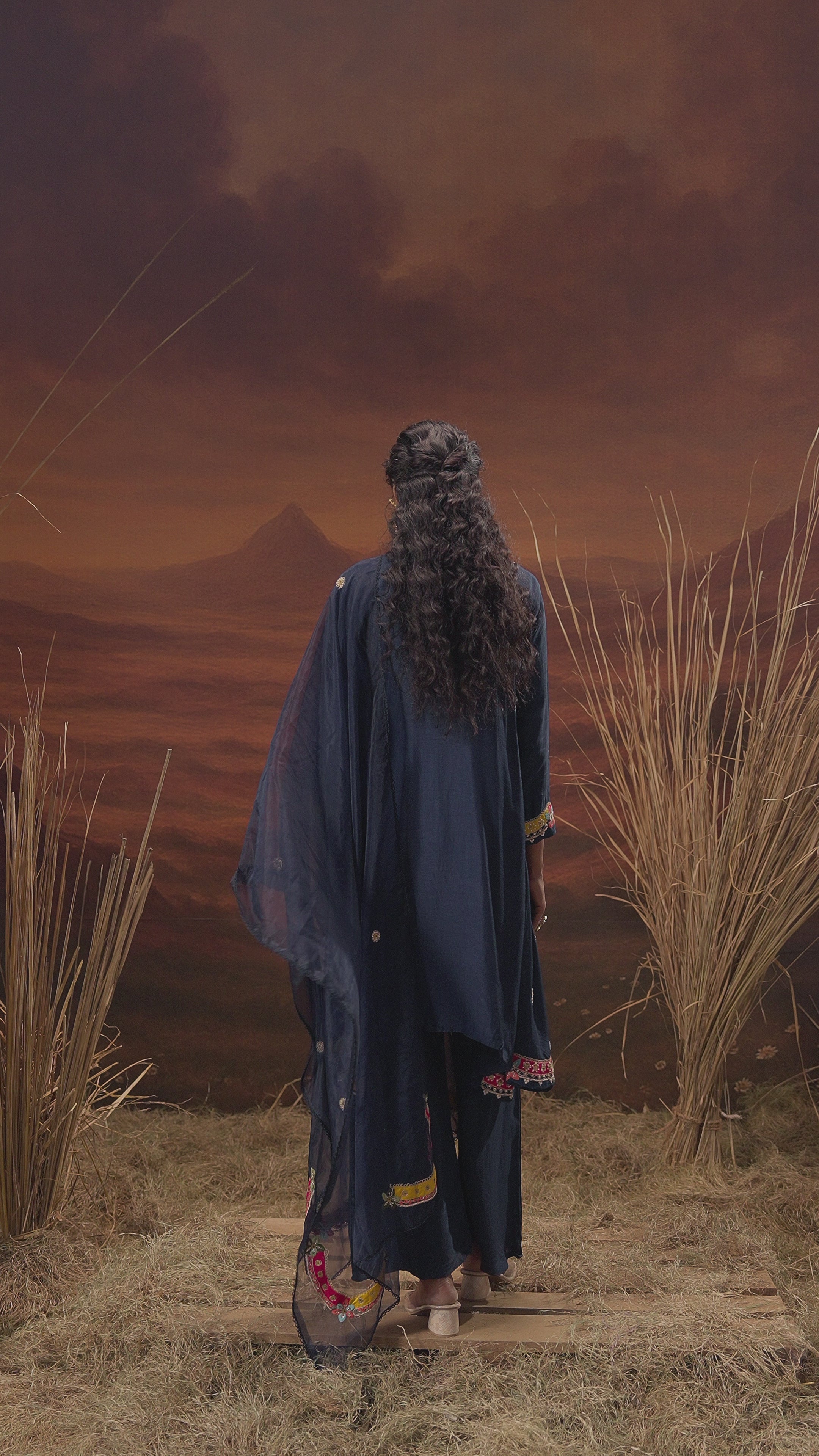 Cream & Blue Cotton Katha Handwork Co-Ord Set