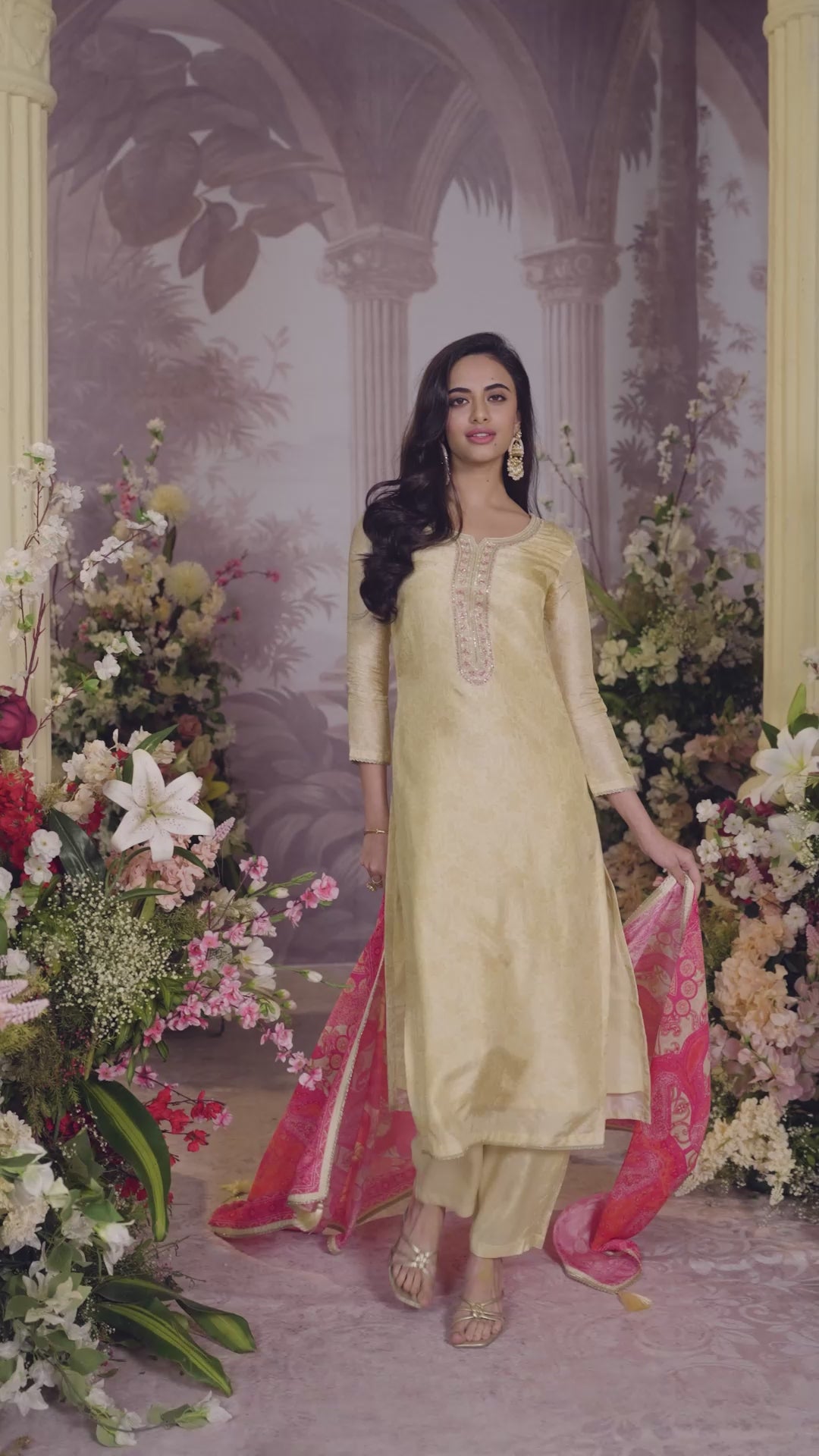Champagne Beige Banarasi Silk Embroidered Kurta Set
