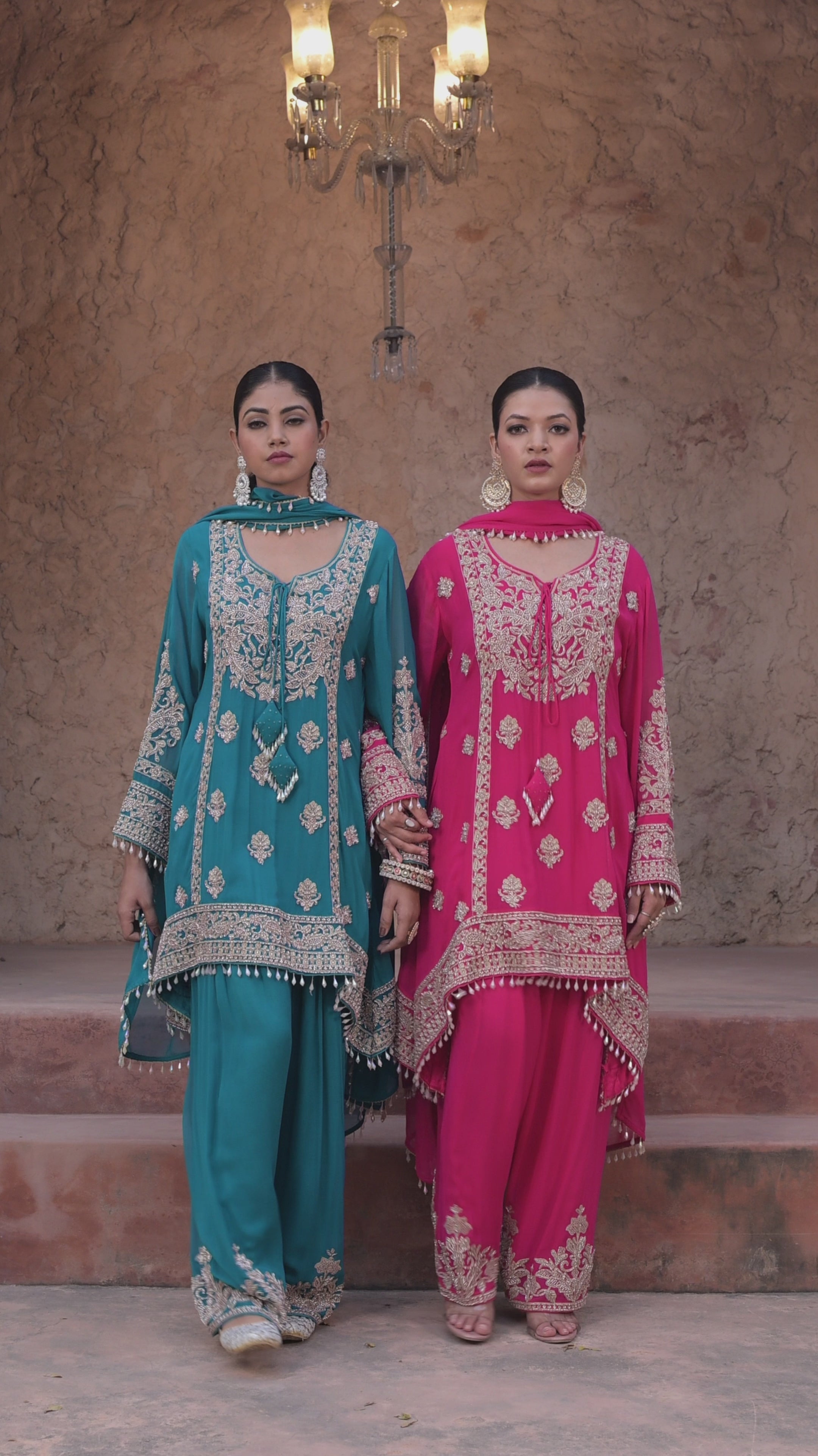 Berry Pink Embellished Georgette Silk Pant Set