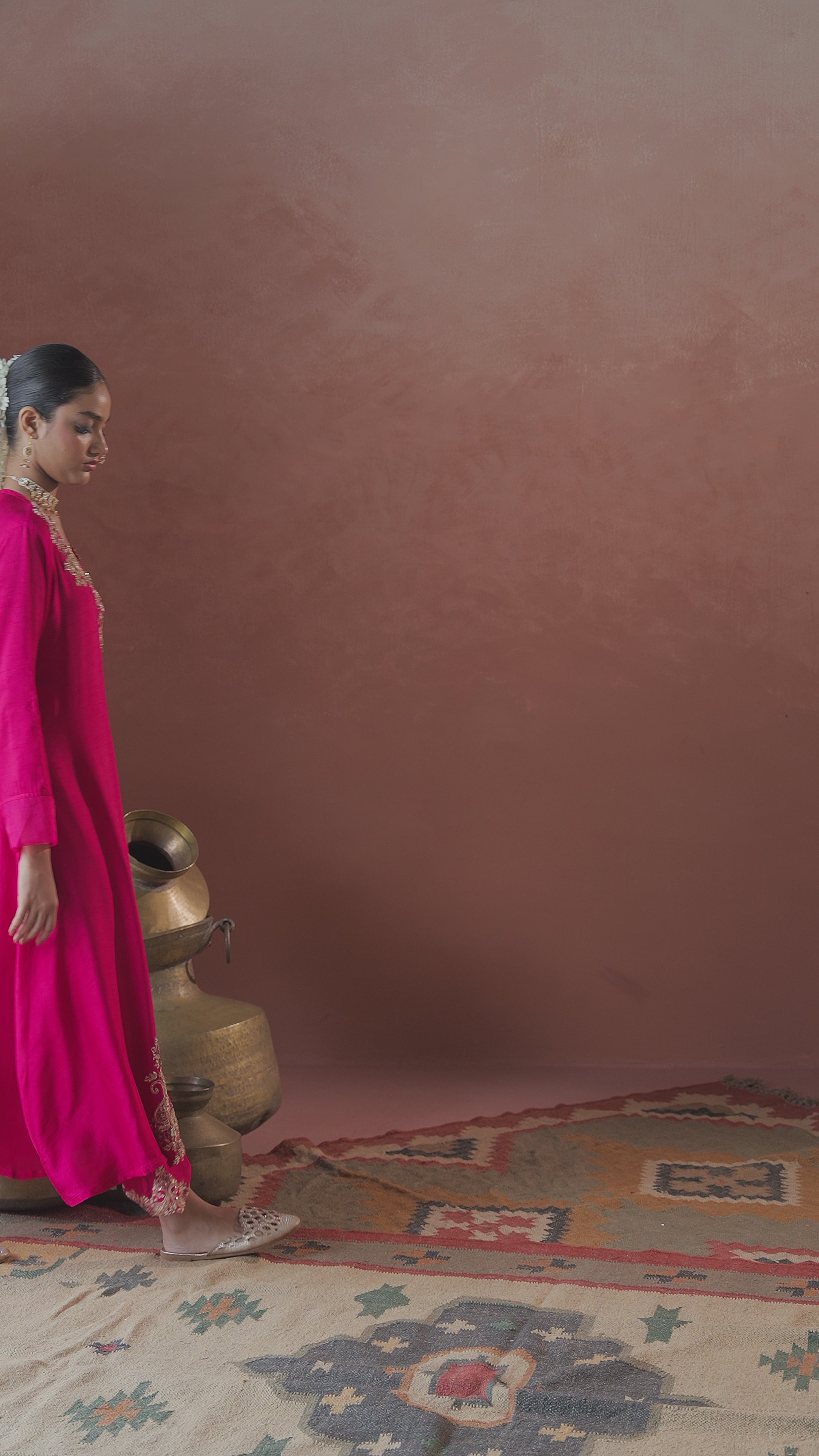 Raspberry Pink Embellished Raw Silk Kurta Set