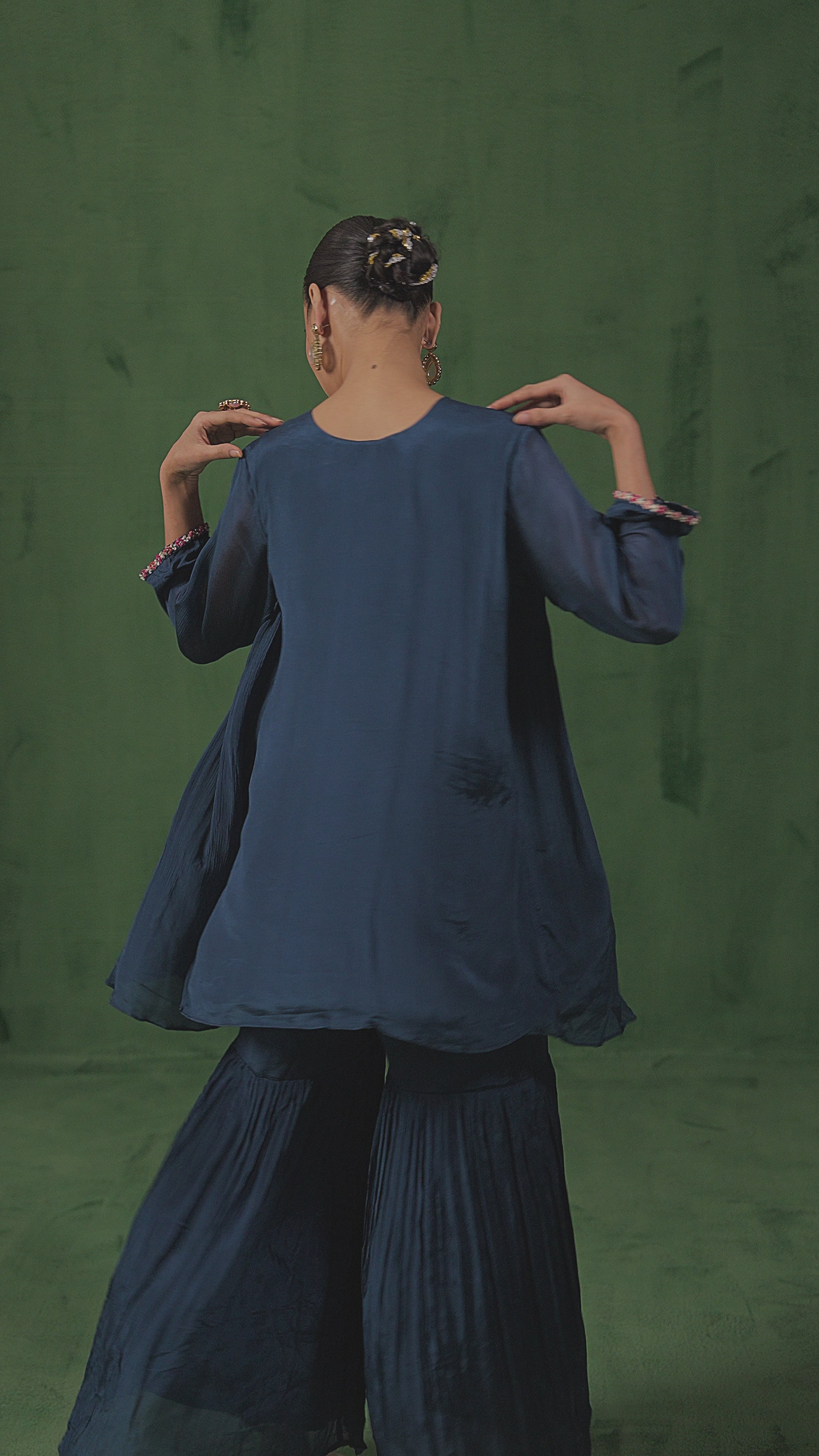 Twilight Blue Embellished Georgette Silk Sharara Set
