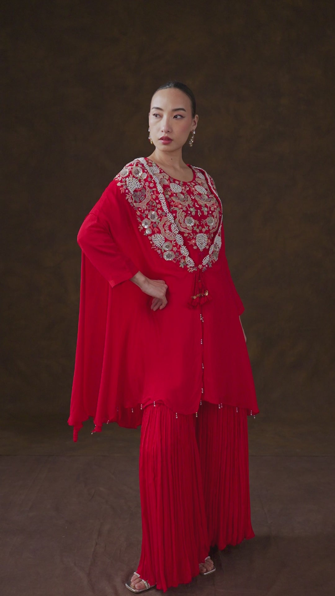 Crimson Zari Embellished Chinon Silk Sharara Set