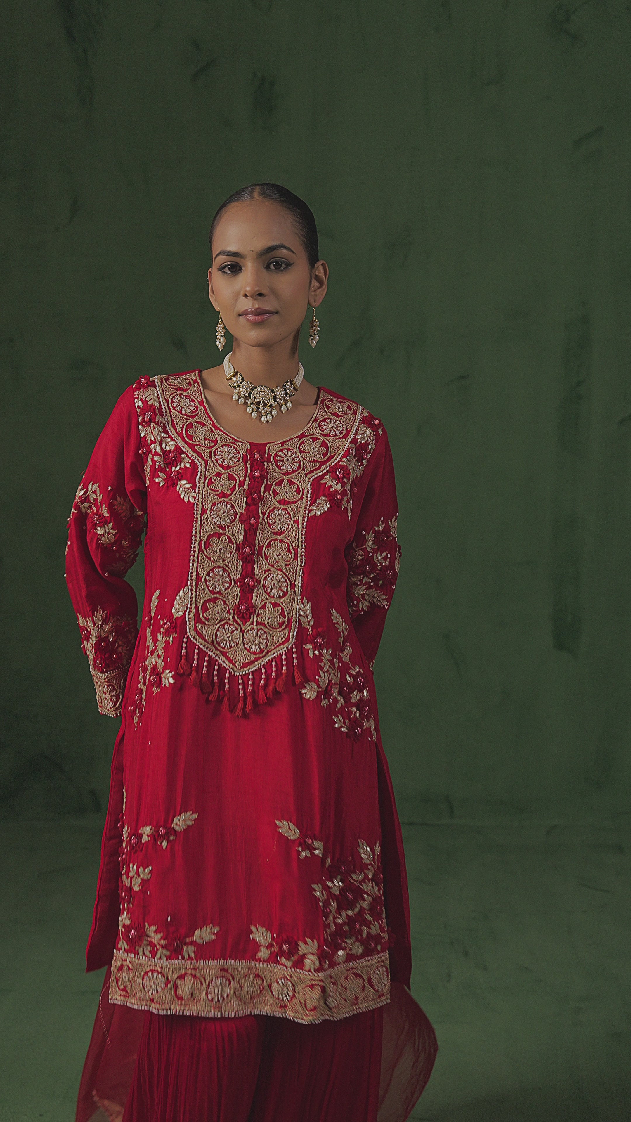 Twilight Blue Embroidered Raw Silk Sharara Set