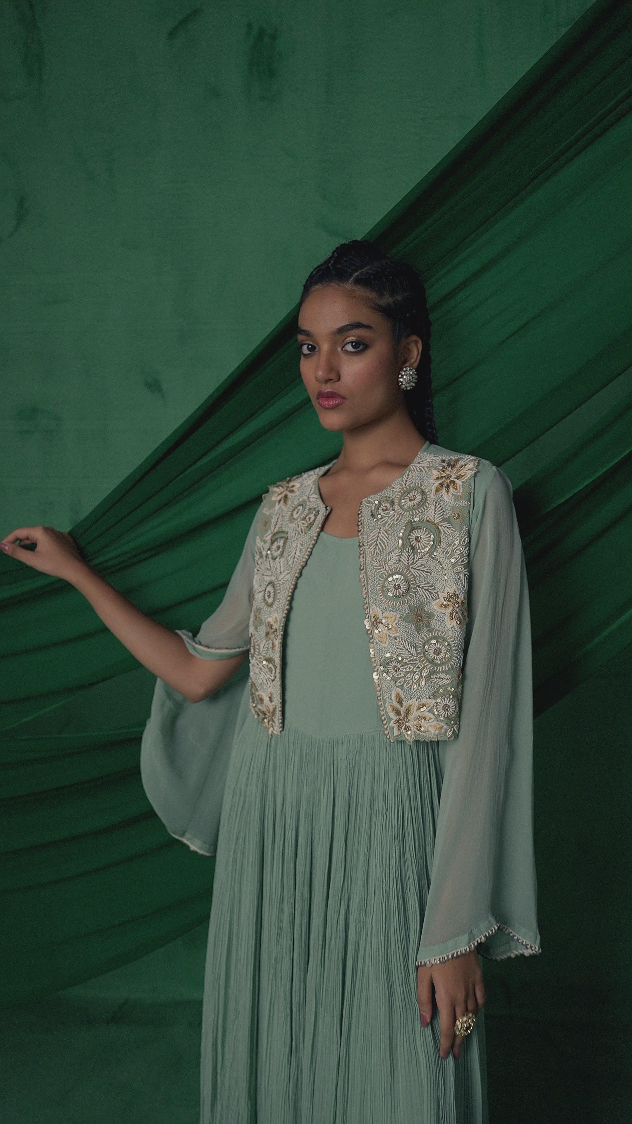 Dusty Beige Embellished Shimmer Tissue Silk Sharara Set