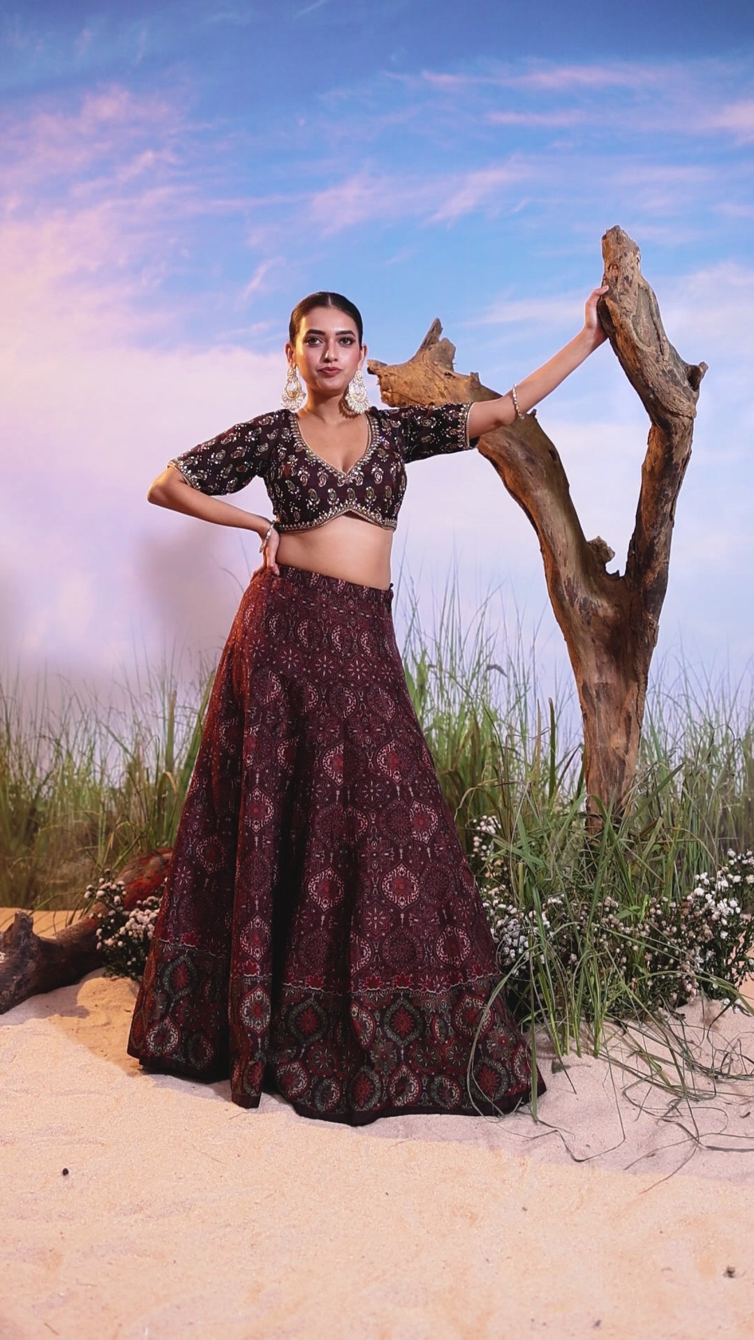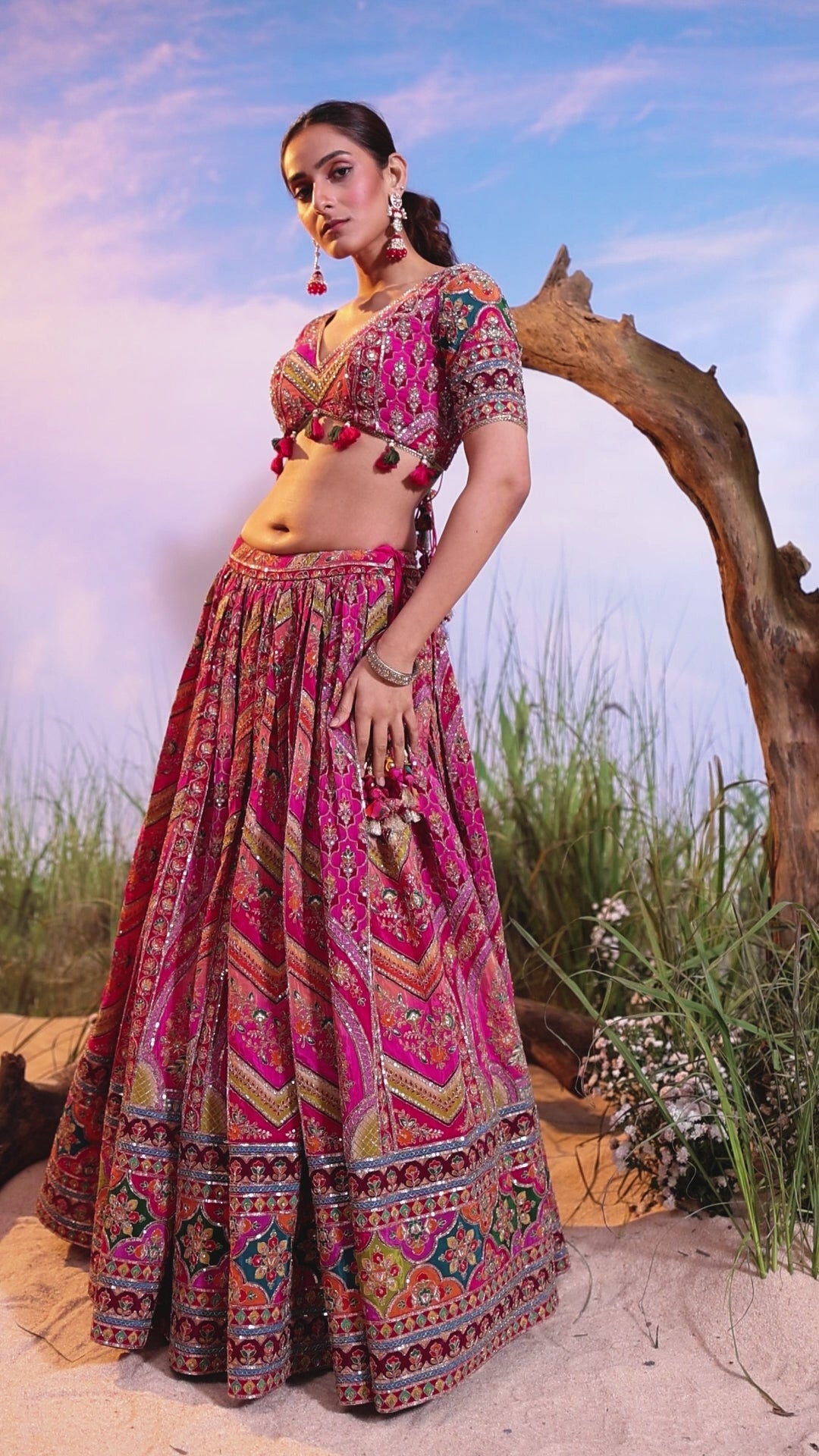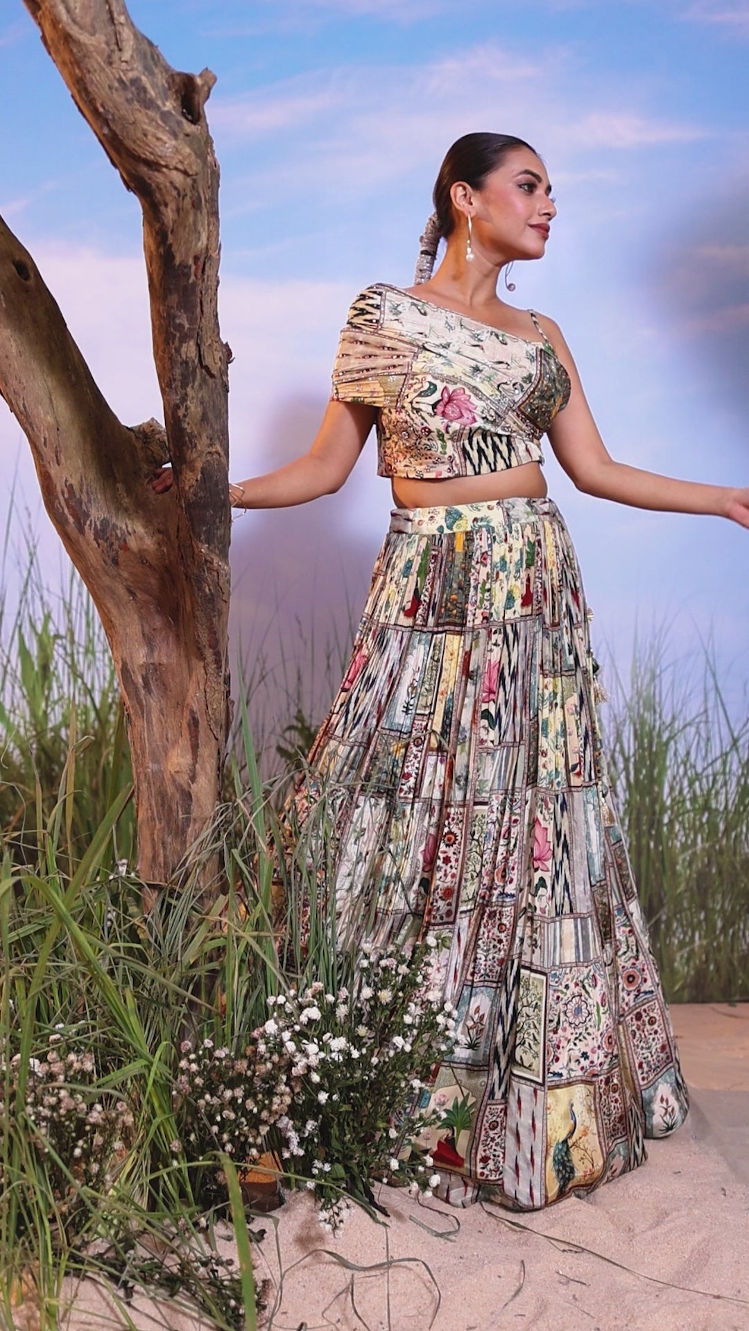 Dual-Shade Multi-Print Premium Silk Lehenga Set