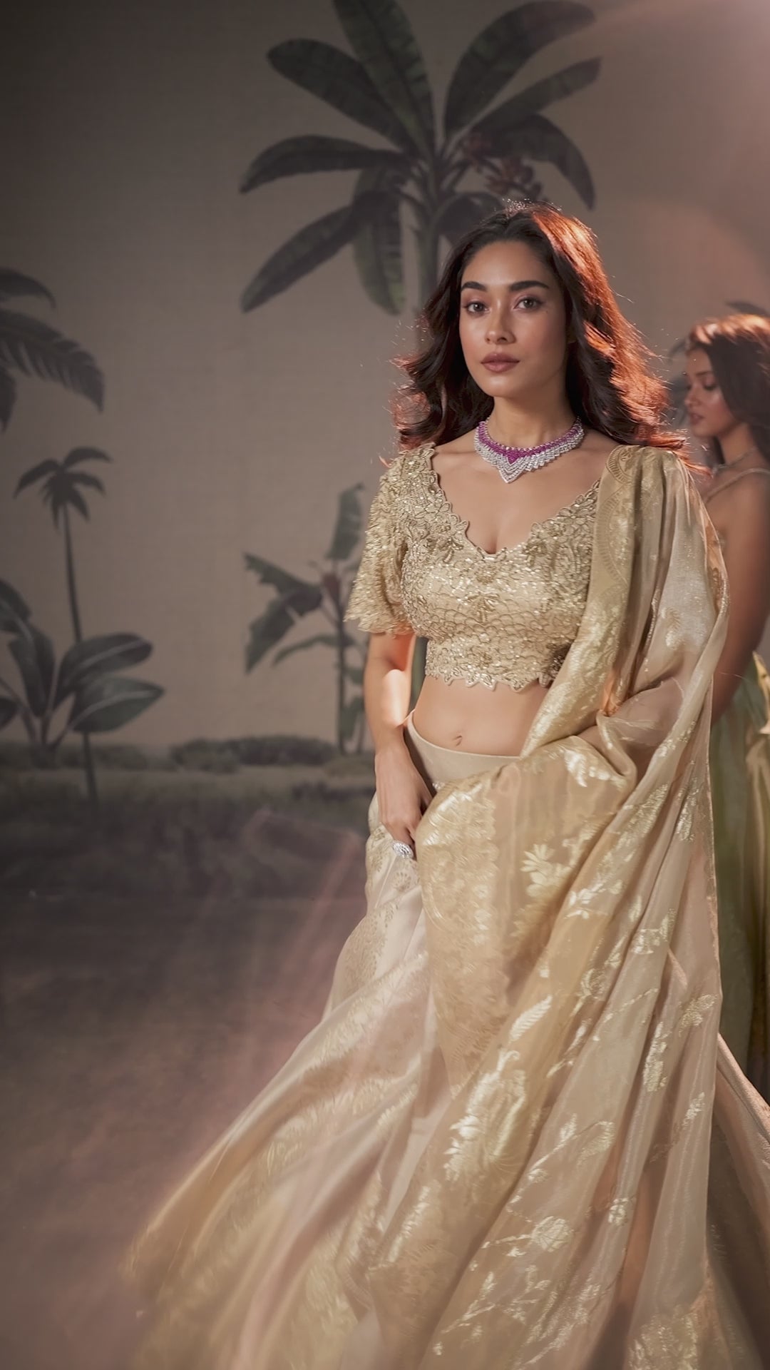 Champagne Gold Embellished Linen Satin Lehenga Set