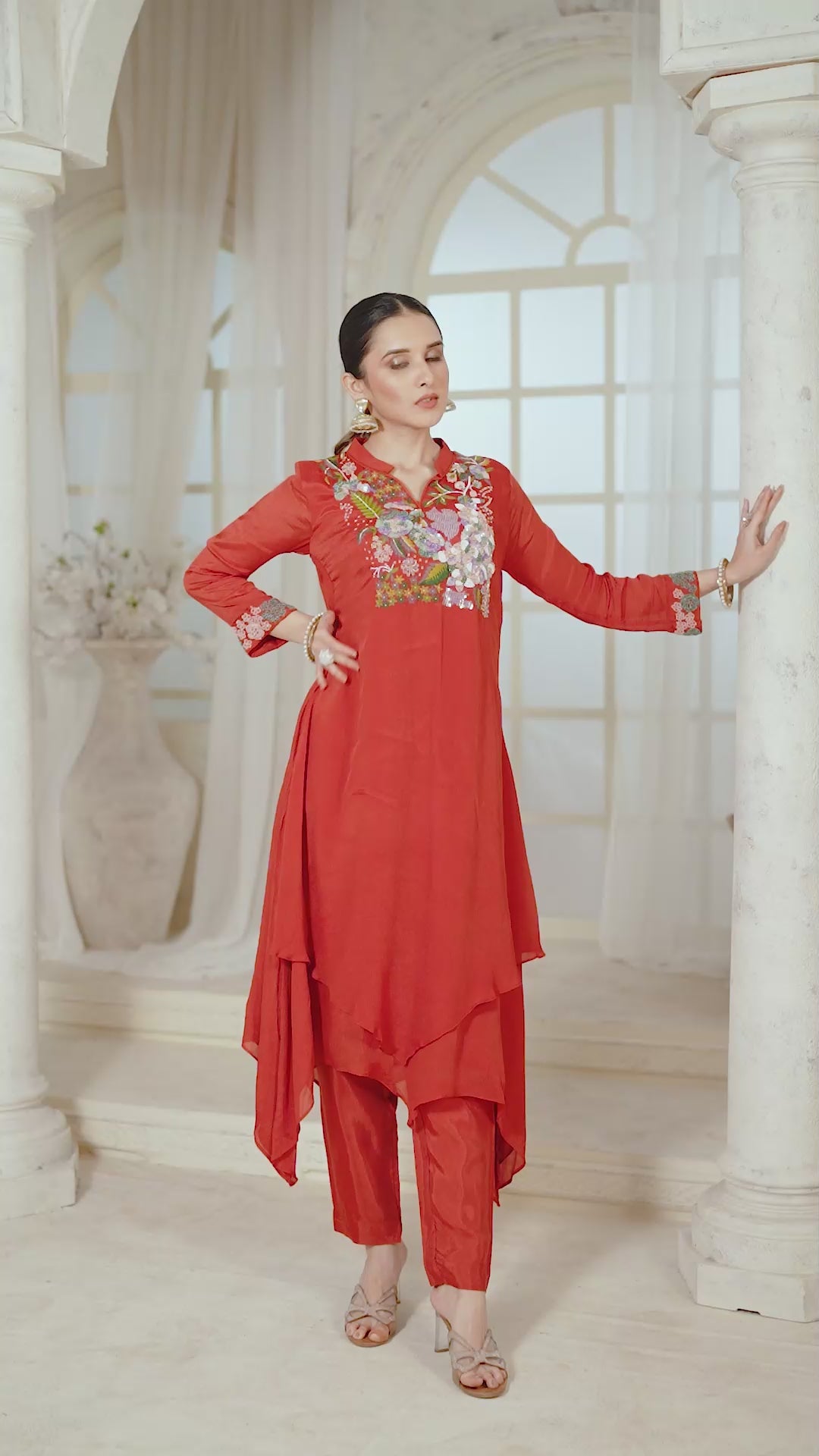 Terracotta Orange Embellished Crepe Silk Palazzo Set