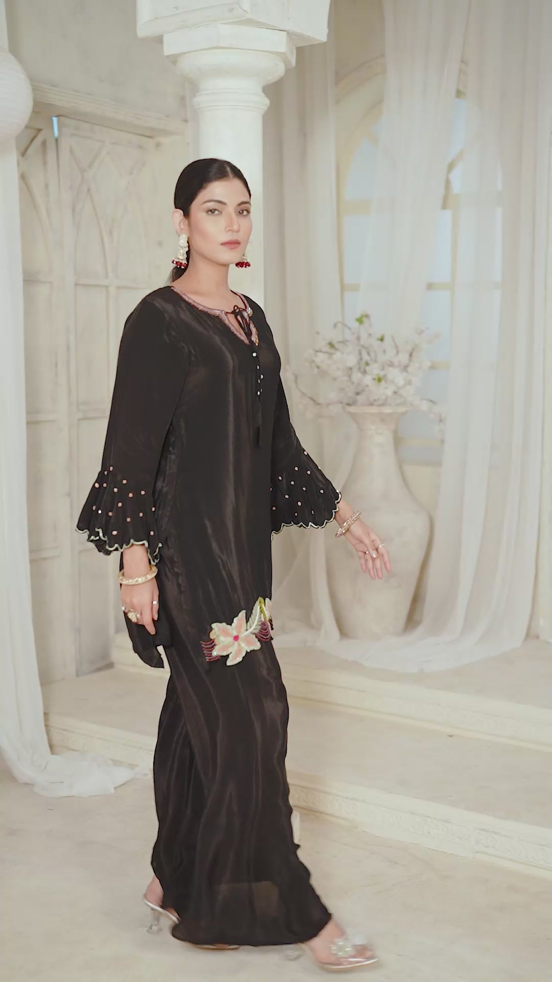 Reddish-Brown Embellished Chinon Silk Kurta Set