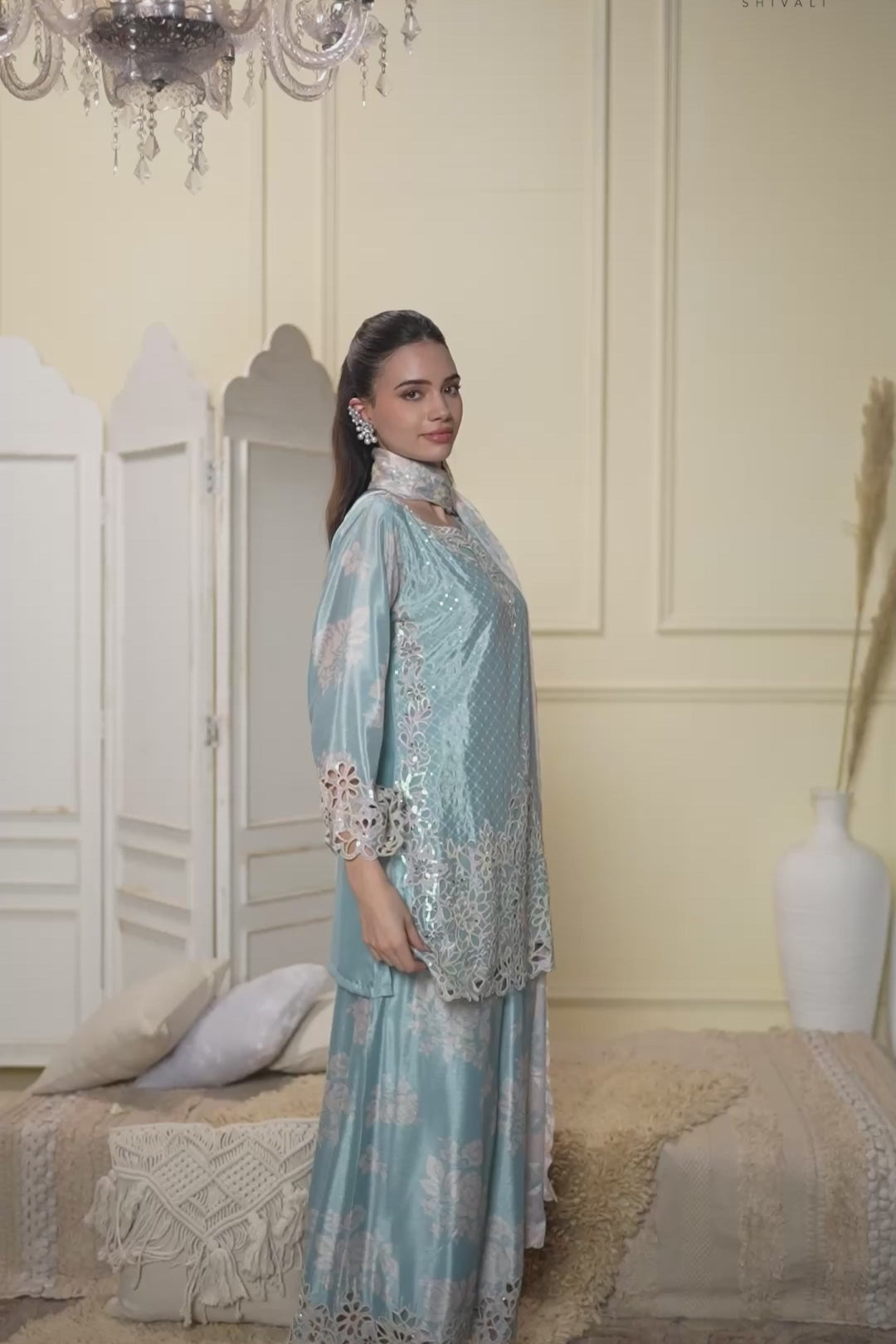 Light Blue Embellished Tissue Silk Palazzo Set