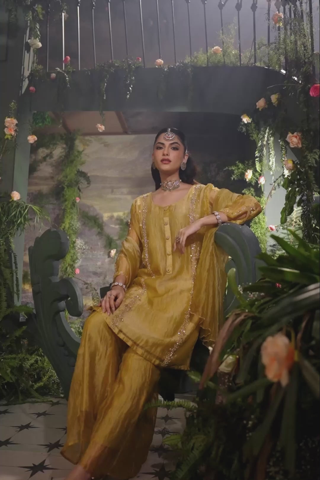 Meher Gold Embellished Shimmer Tissue Silk Palazzo Set