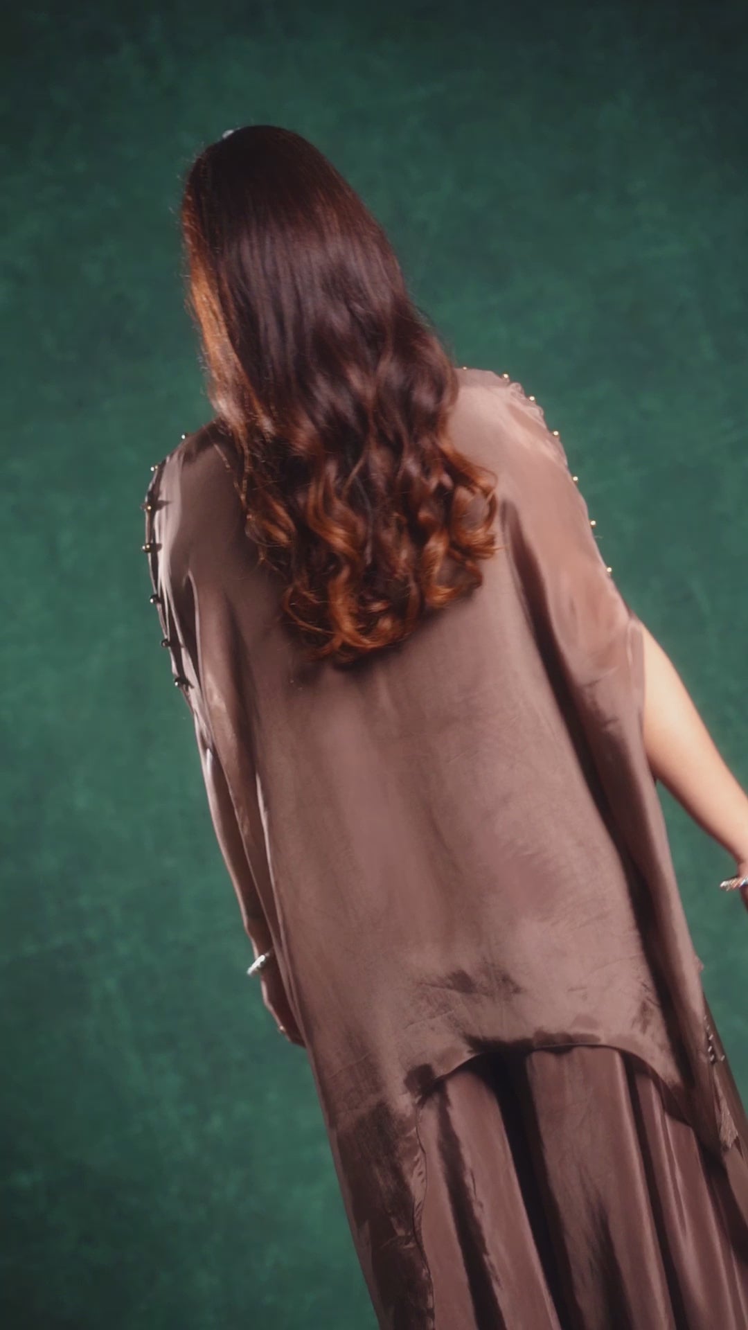 Dusty Coffee Brown Embellished Organza Silk Kaftan Set