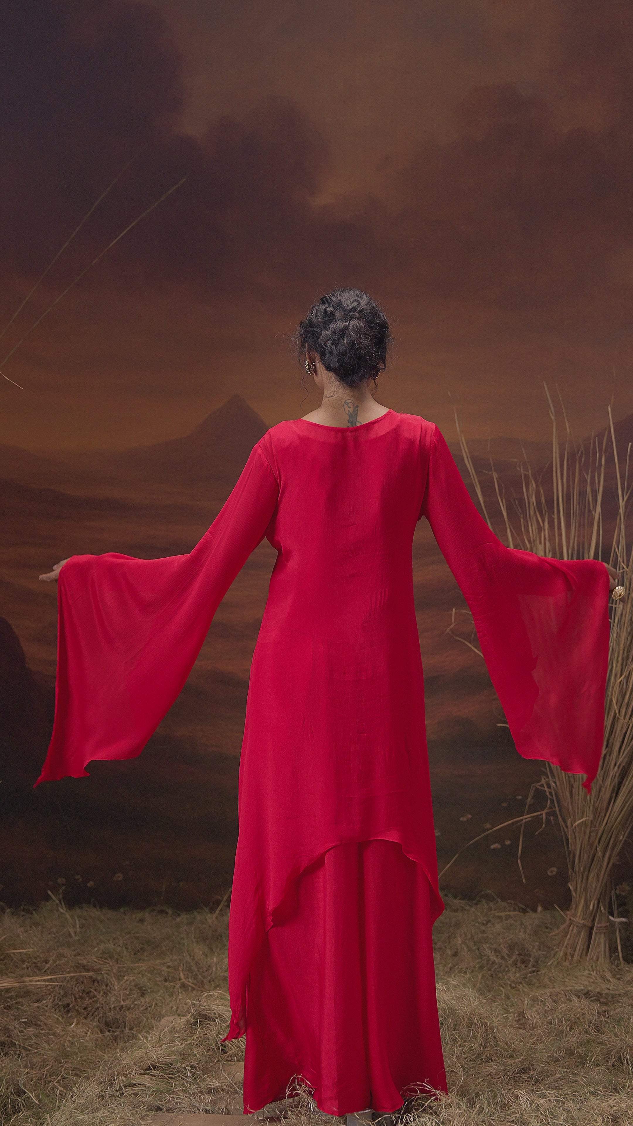Crimson Red Embellished Organic Cotton Palazzo Set