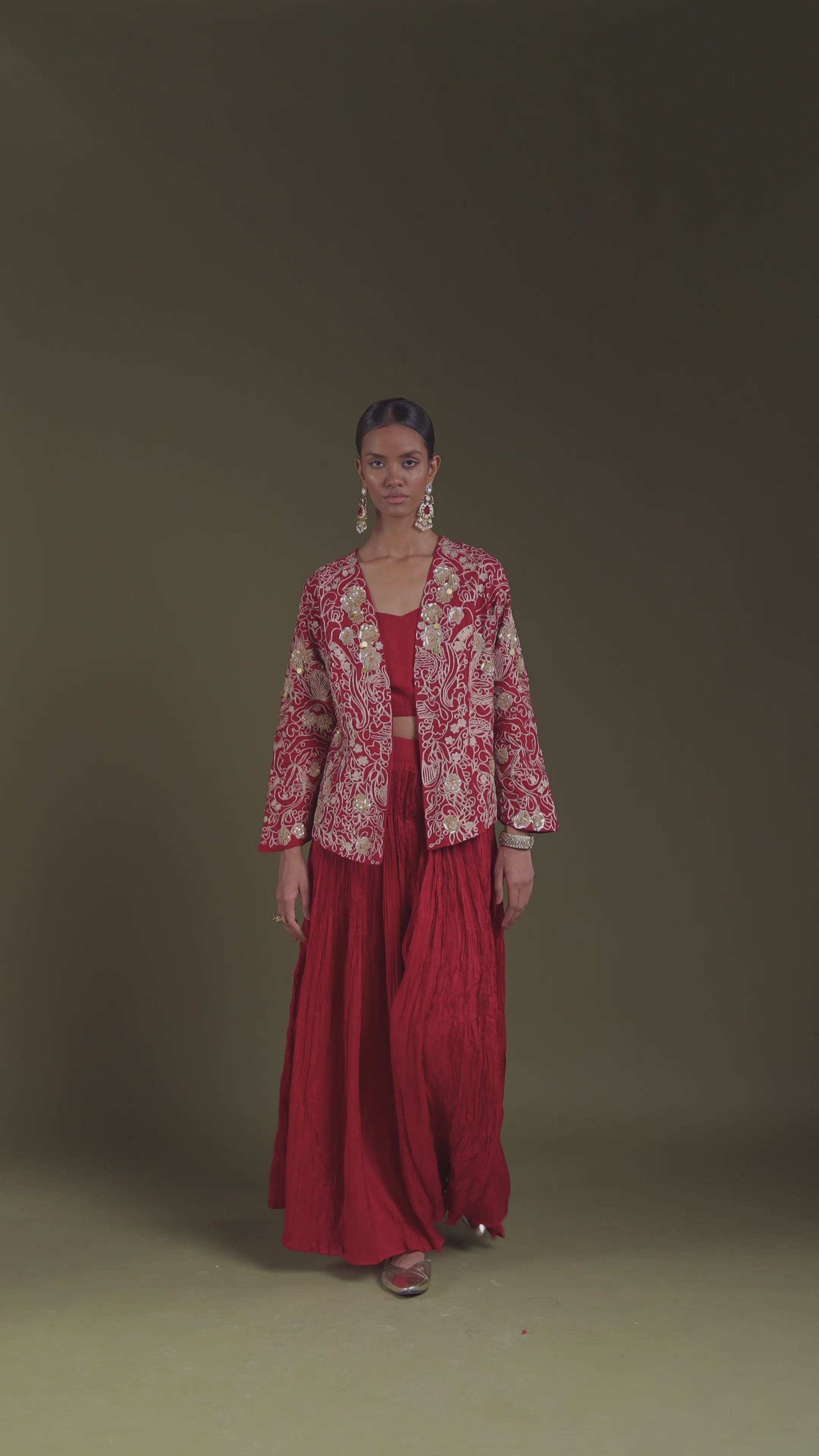 Deep Red Embellished Soft Organza Silk Palazzo Set