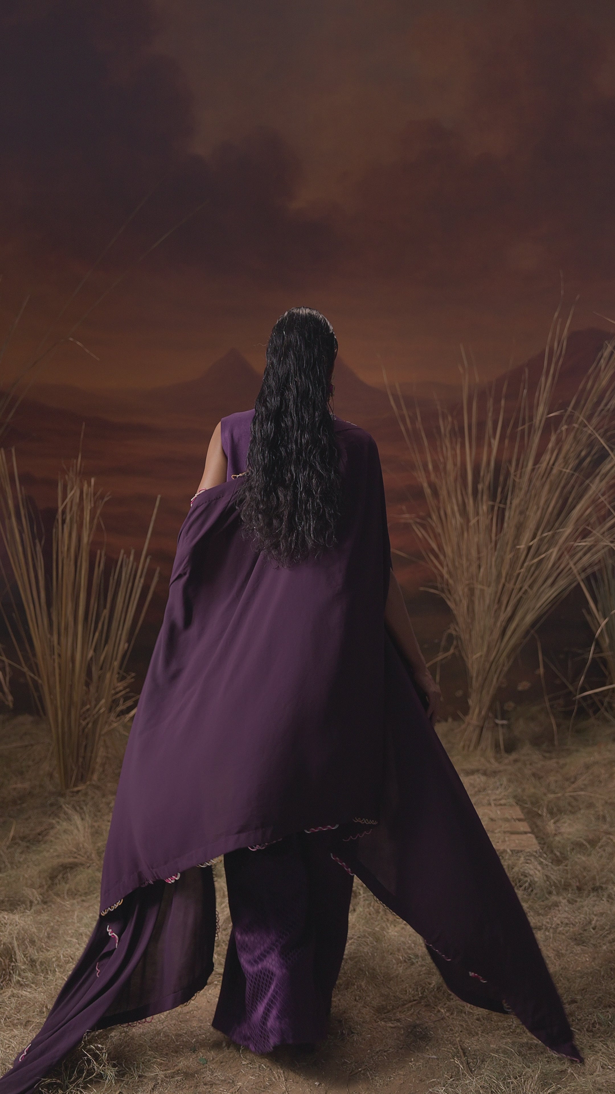 Dark Purple Embellished Organic Cotton Palazzo Set