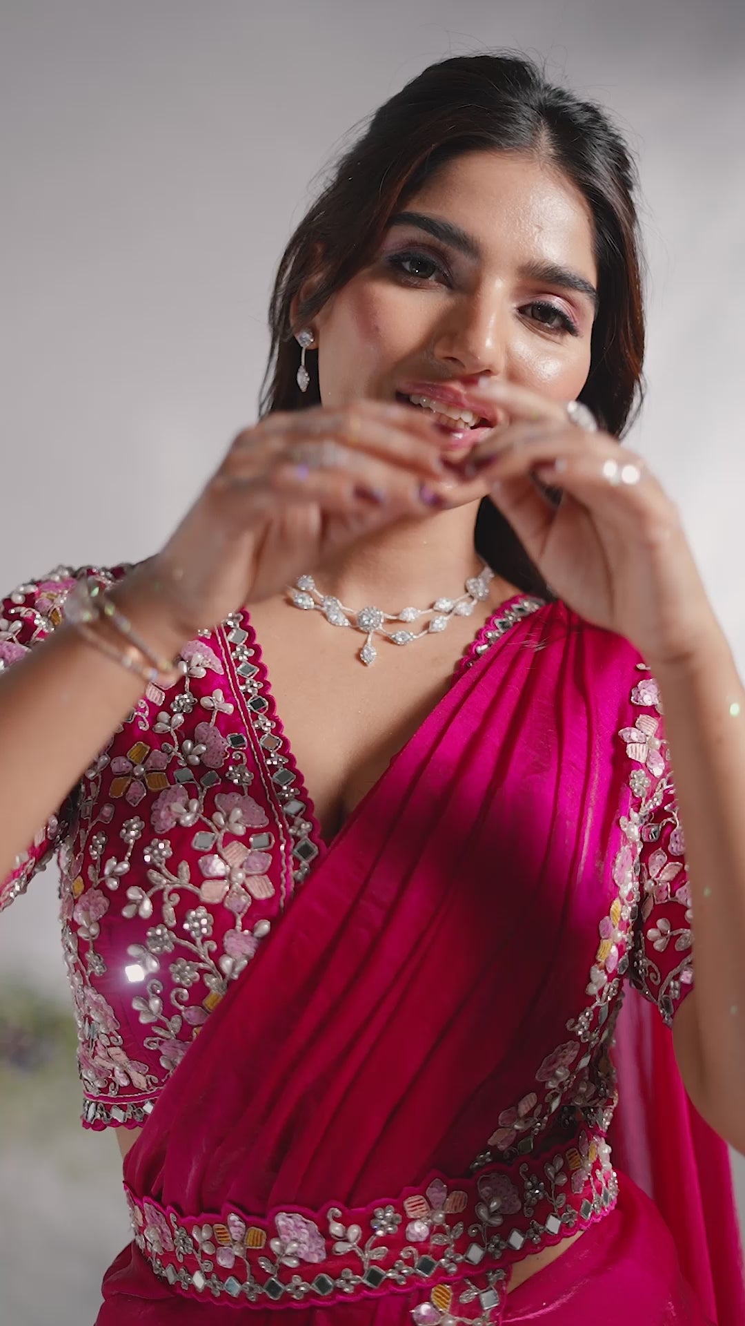 Deep Fuchsia Embellished Soft Organza Silk Saree