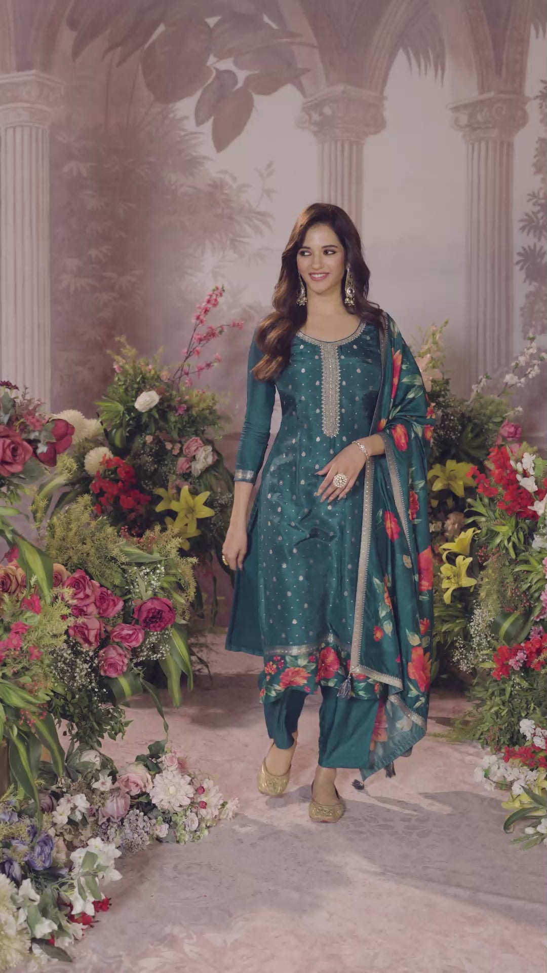 Dark Green to Sea Green Ombre Chinon Silk Kurta Set