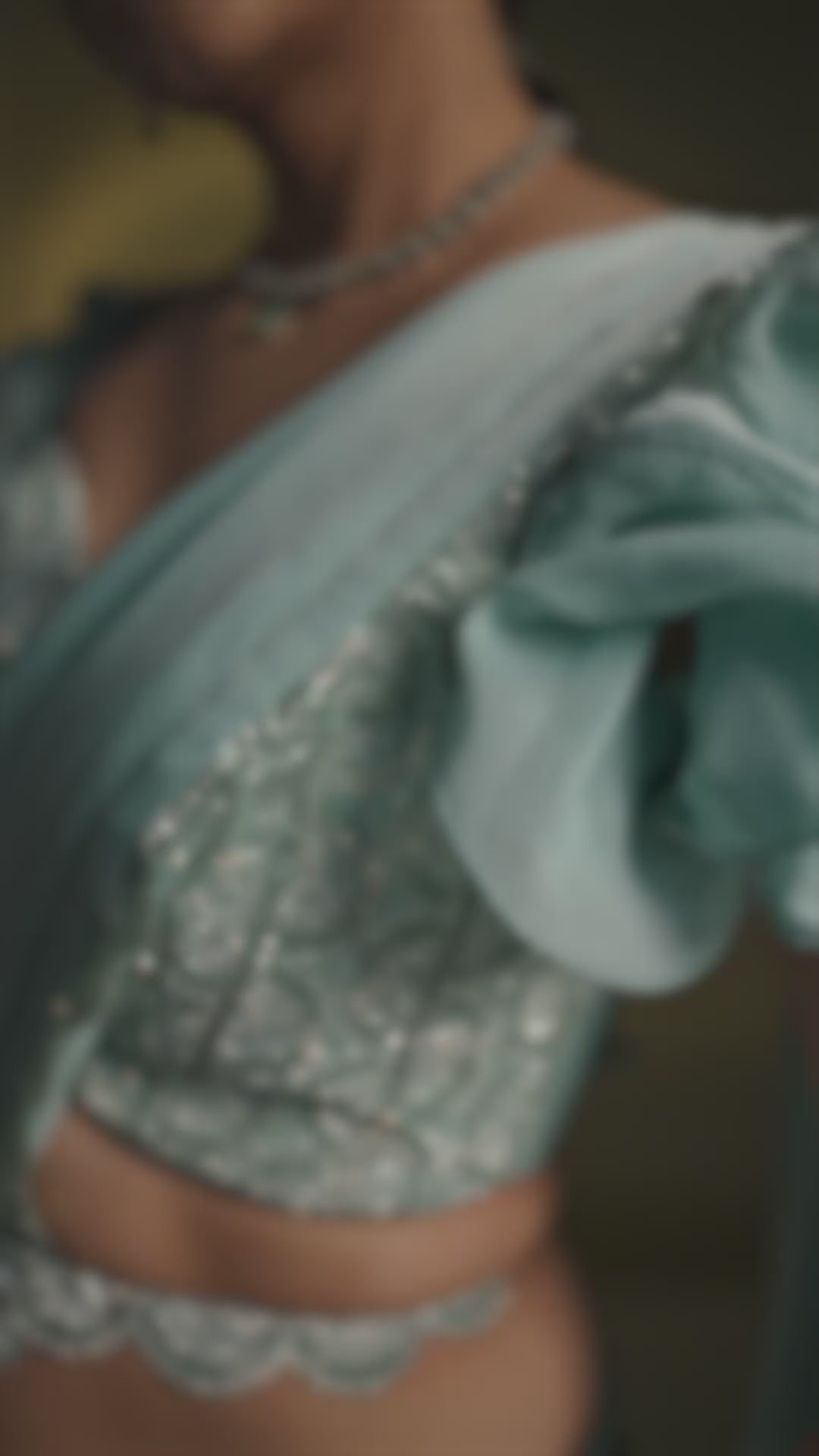 Light Turquoise Embellished Crepe Satin Silk Saree