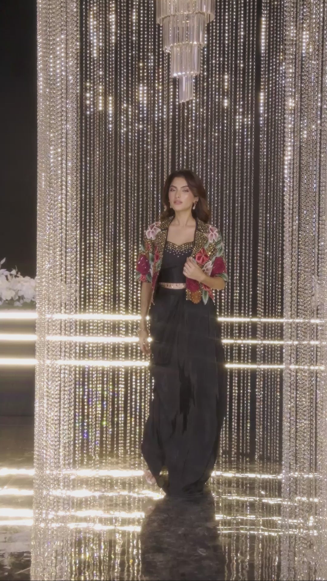 Classic Black Embellished Crepe Silk Drape Skirt Set