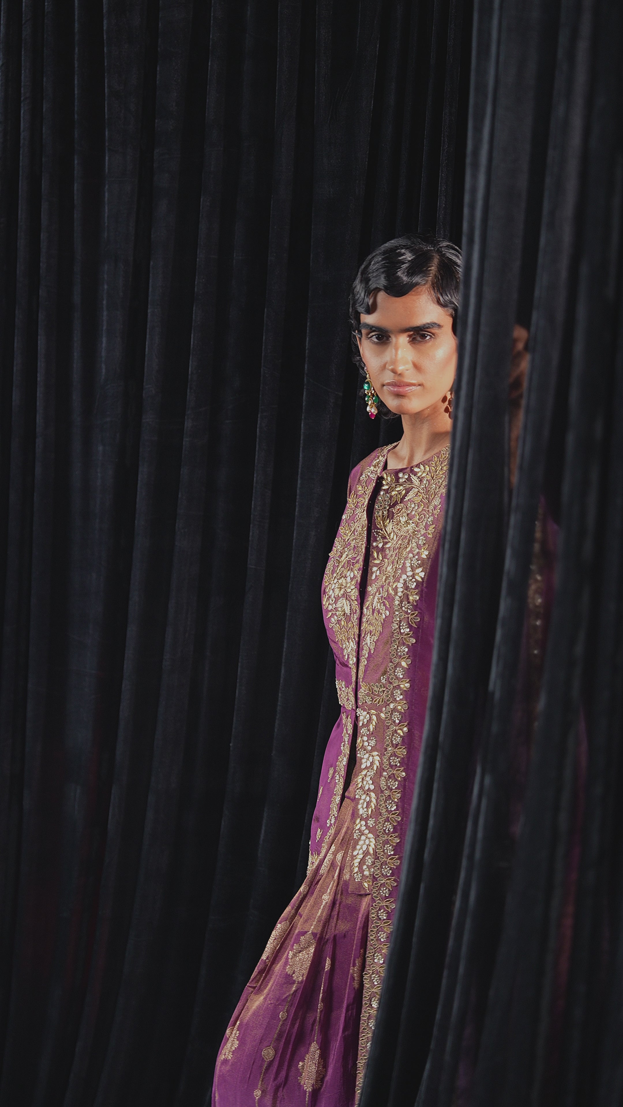 Plum Purple Embellished Shimmer Tissue Silk Skirt Set