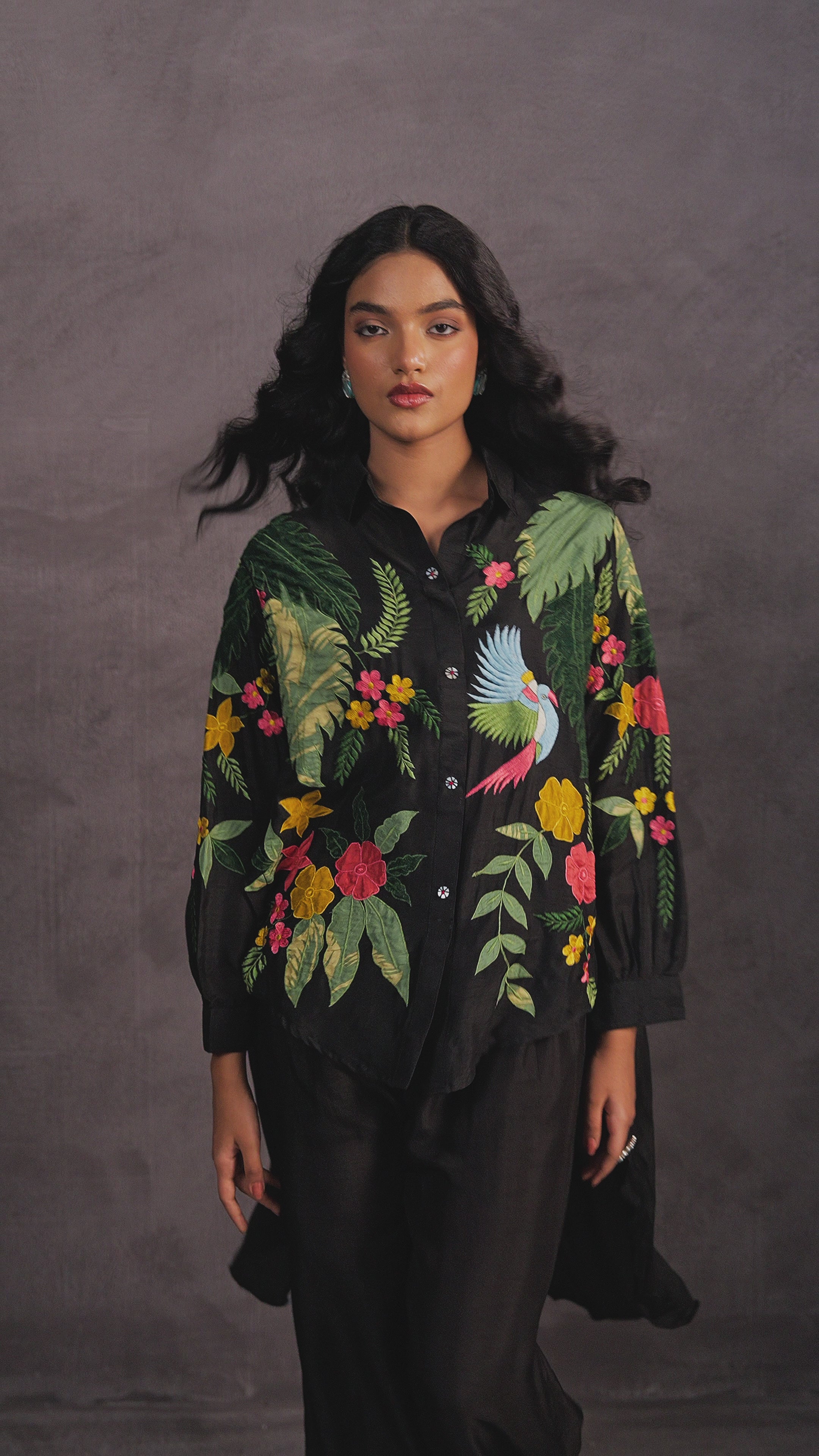 Midnight Black Embroidered Raw Silk Co-Ord Set