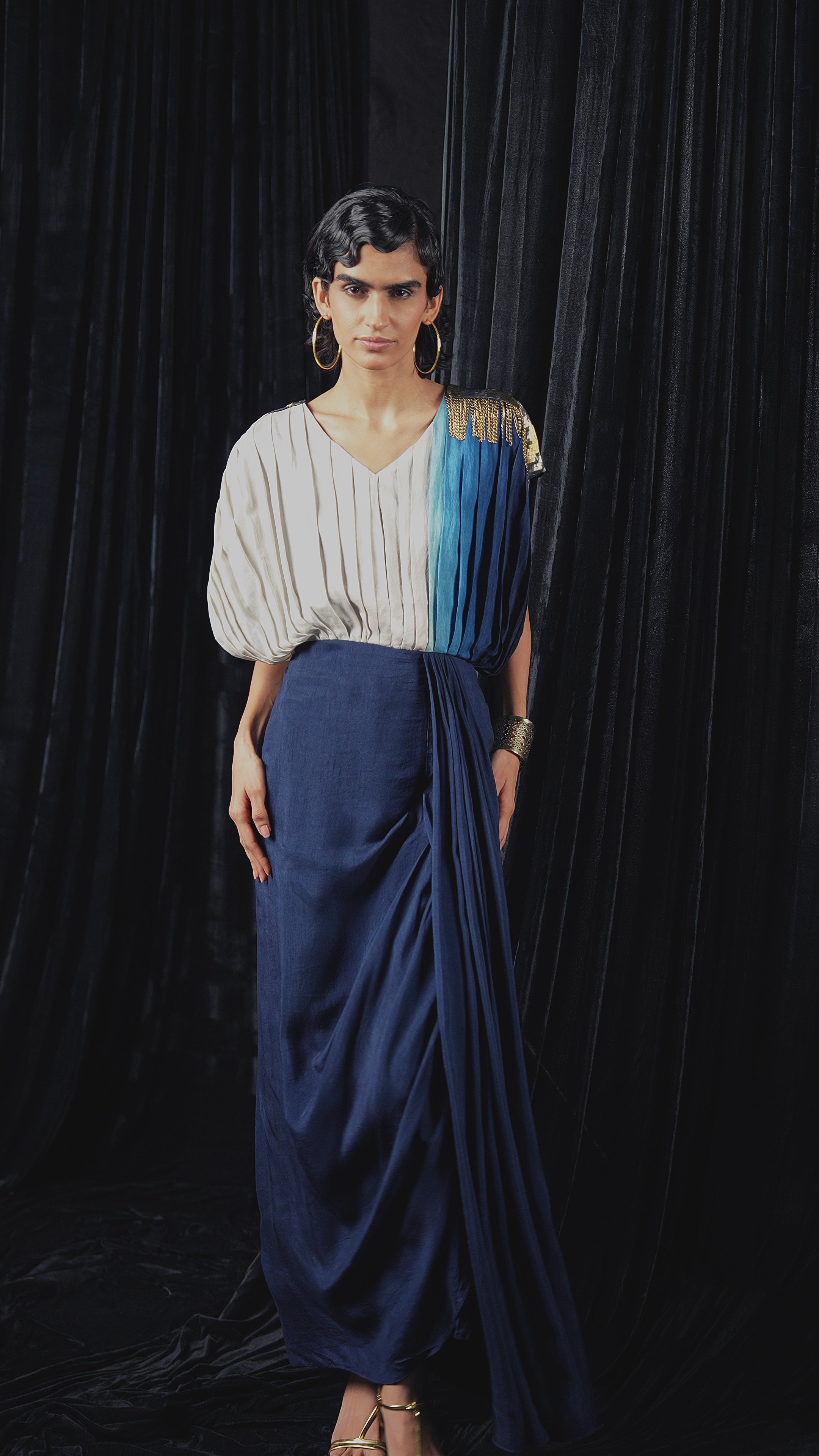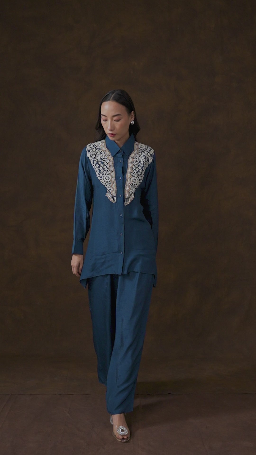 Slate Blue Embellished Raw Silk Co-Ord Set