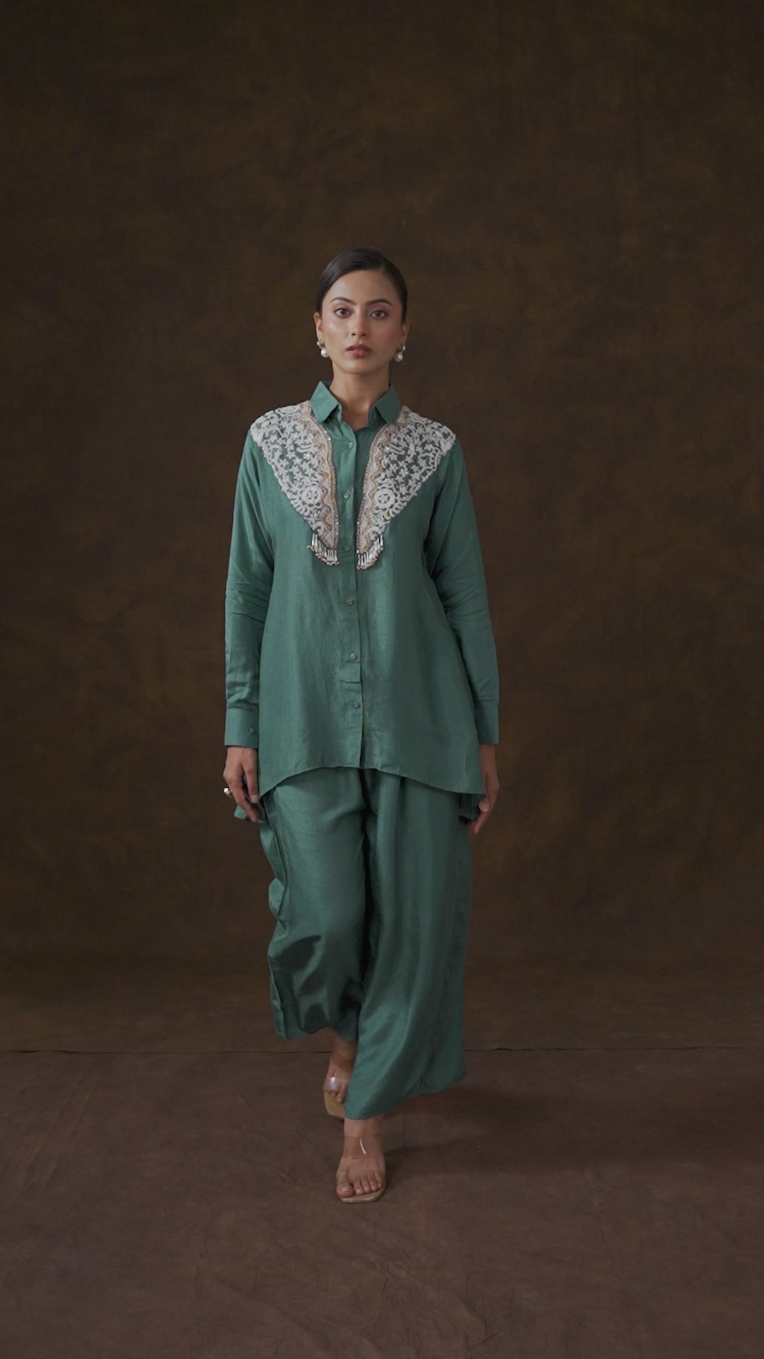 Emerald Green Embellished Satin Silk Co-Ord Set