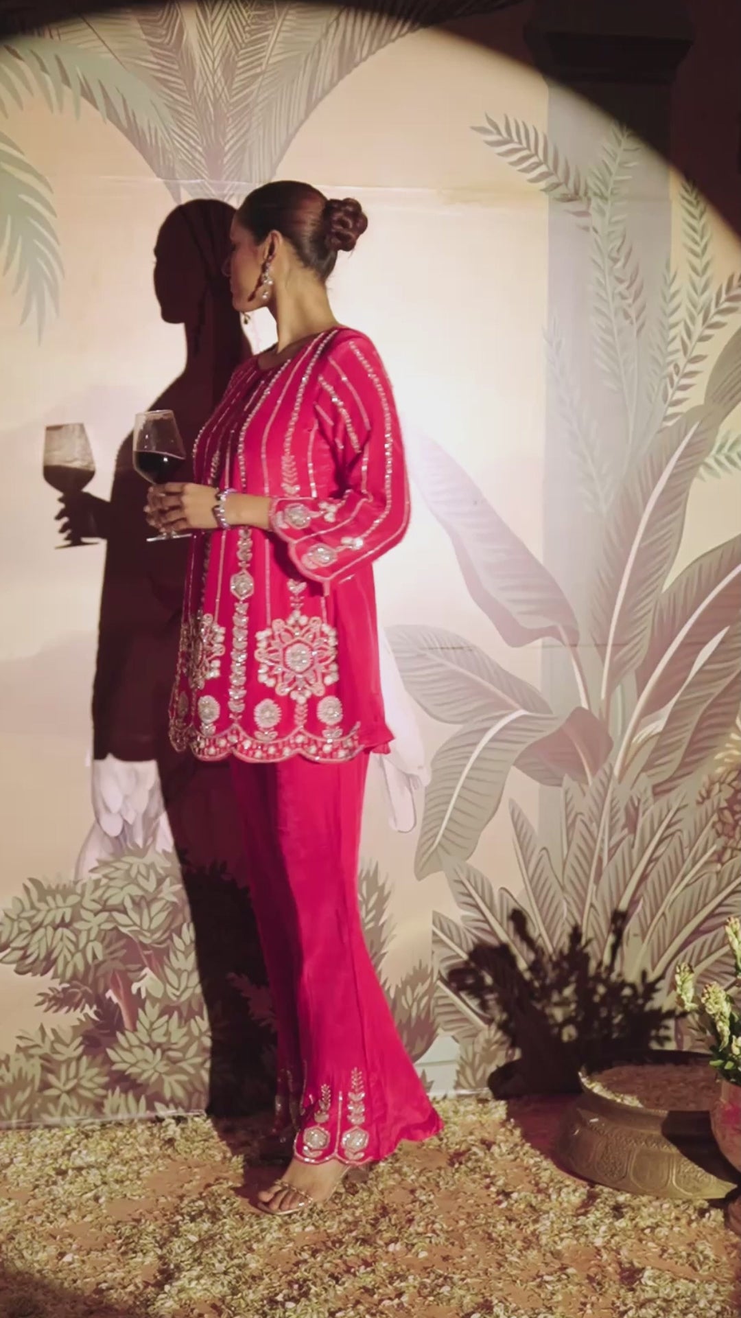 Hot Pink Embellished Satin Silk Co-Ord Set