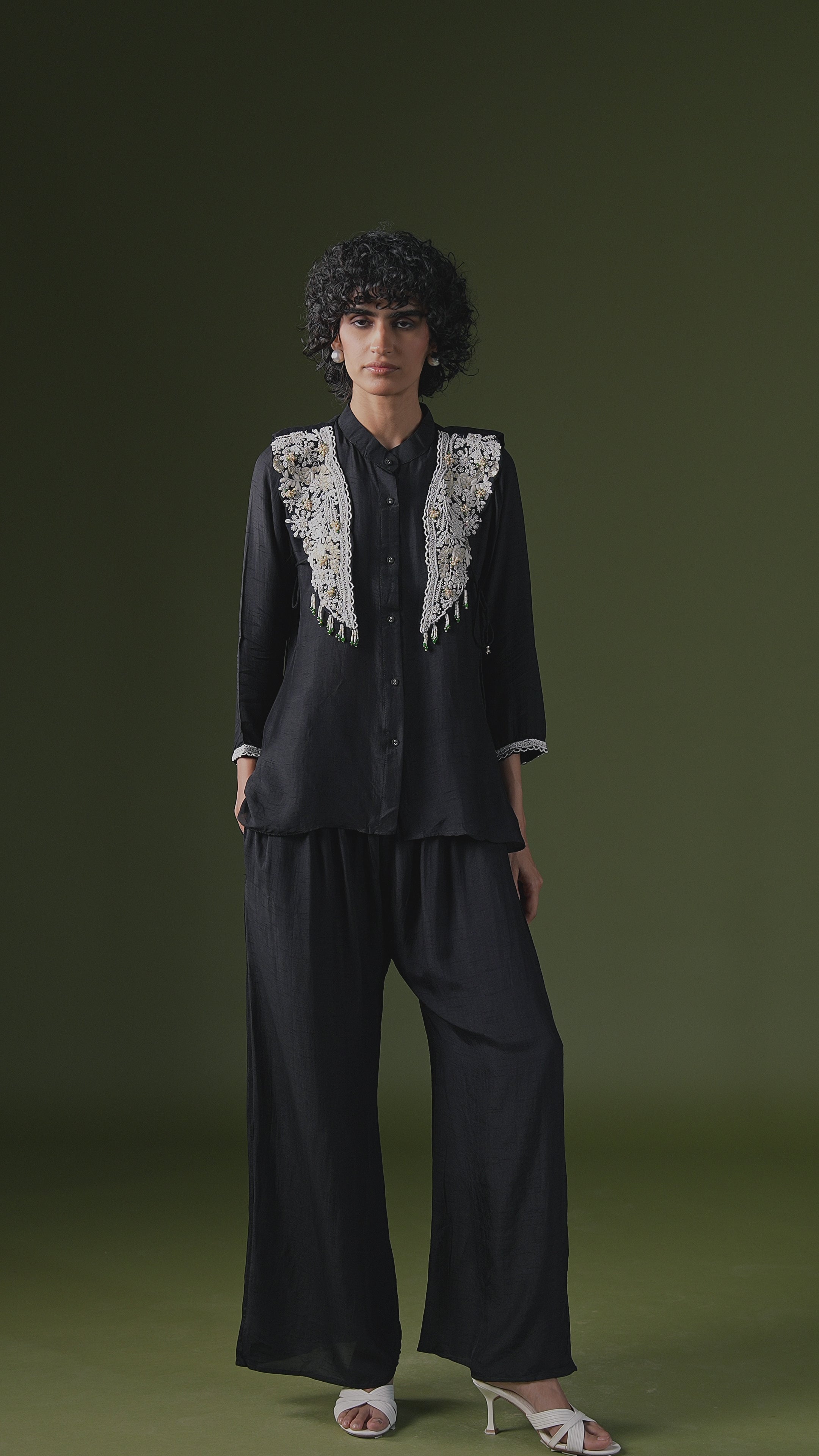 Classic Black Embellished Raw Silk Co-Ord Set