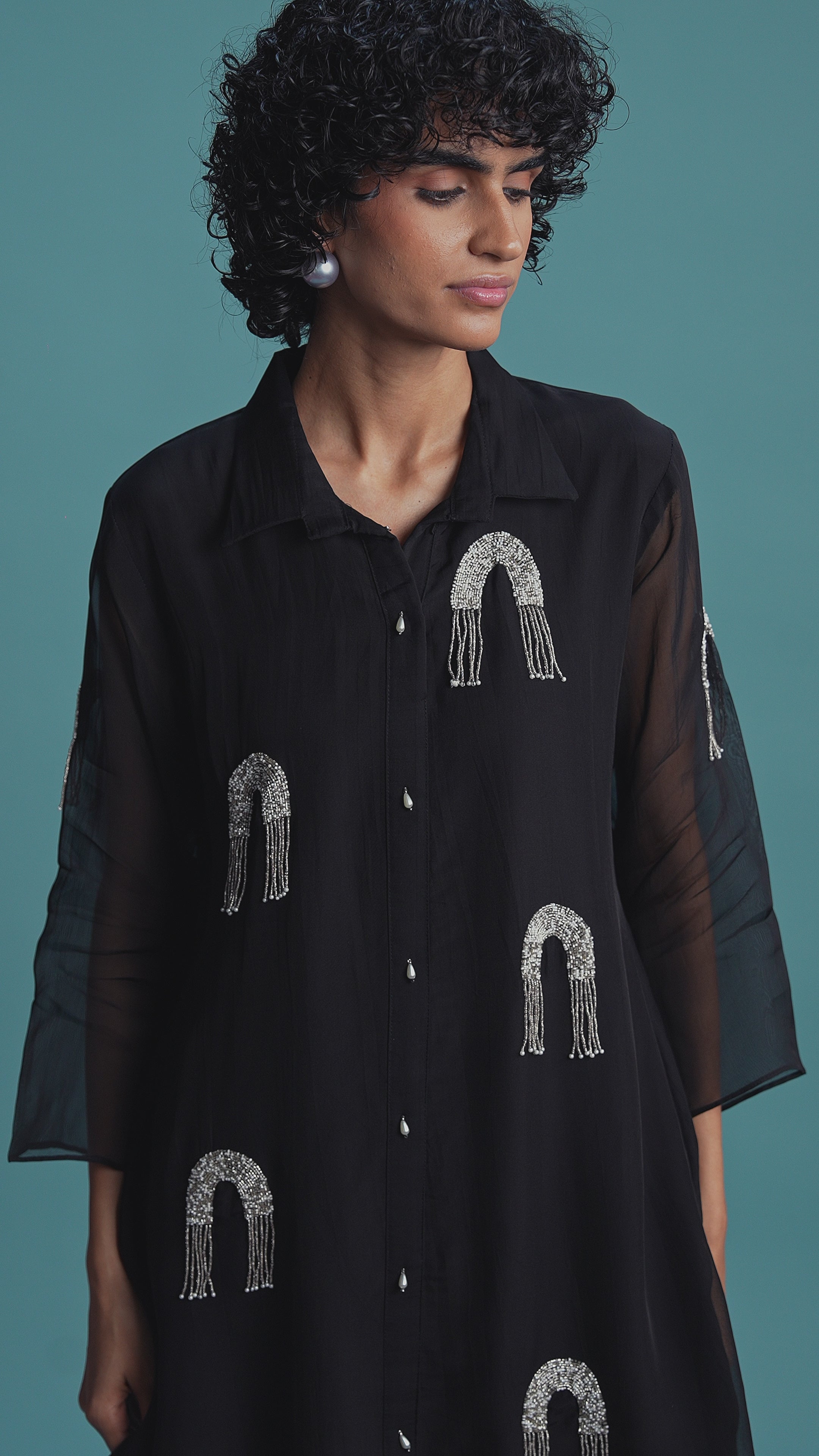 Classic Black Embellished Soft Organza Silk Co-Ord Set
