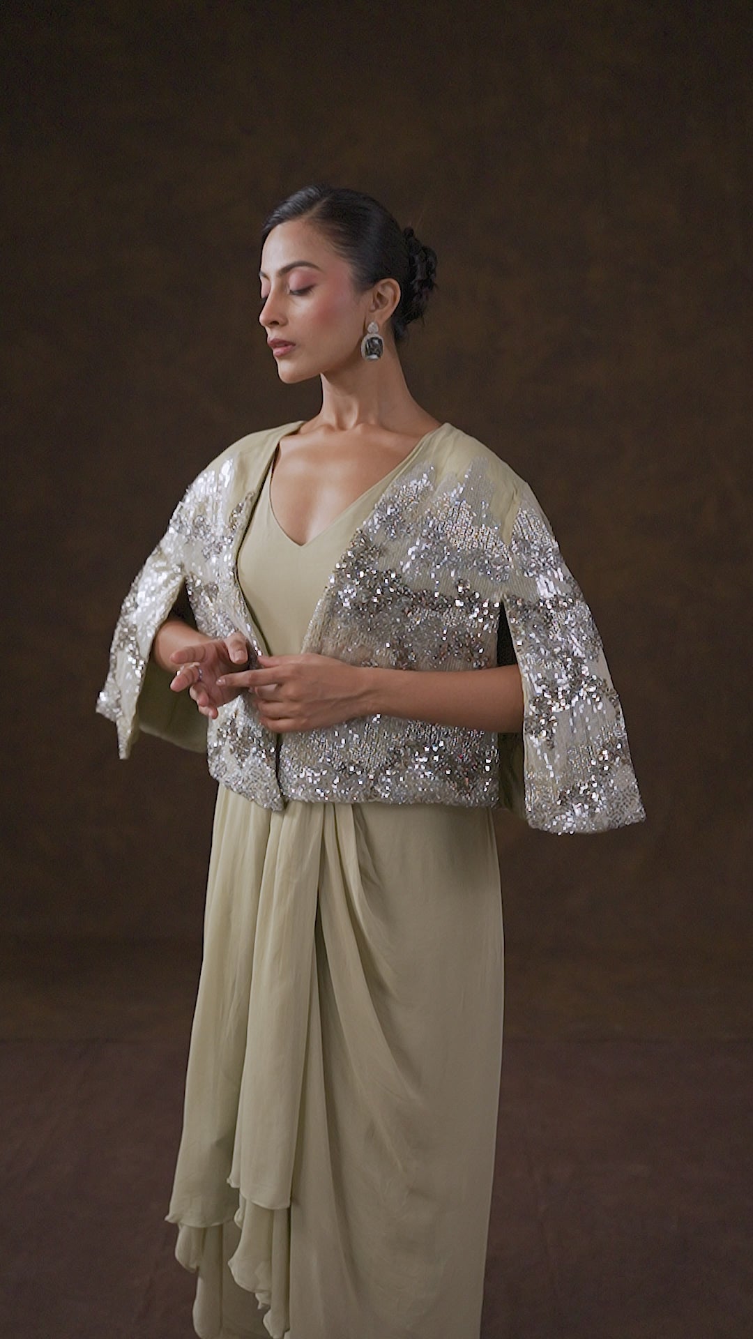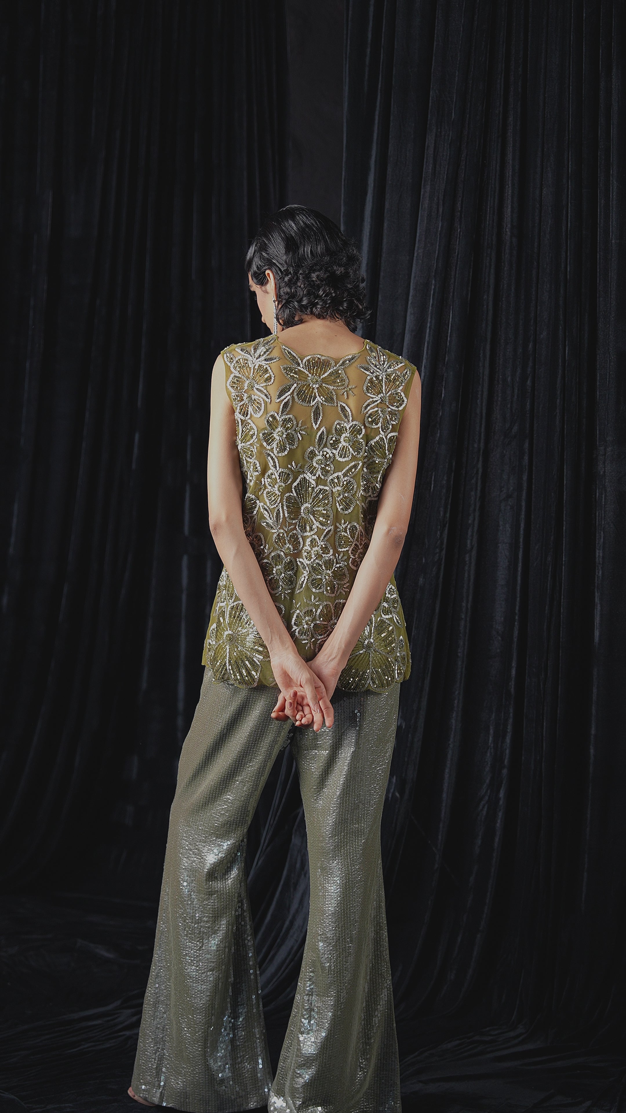 Olive Green Embellished Sequin Co-Ord Set