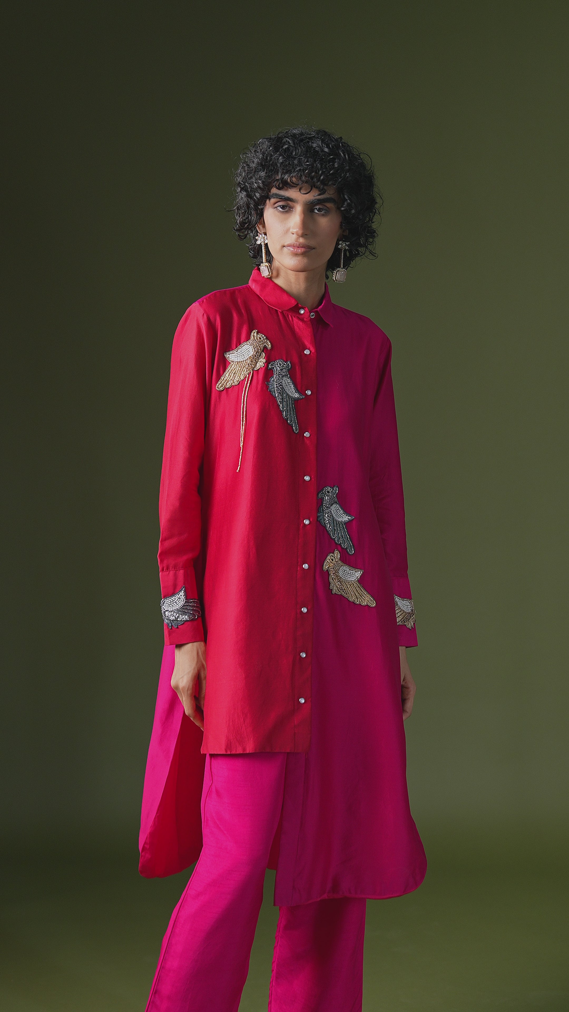 Dark Pink Embellished Crepe Silk Co-Ord Set