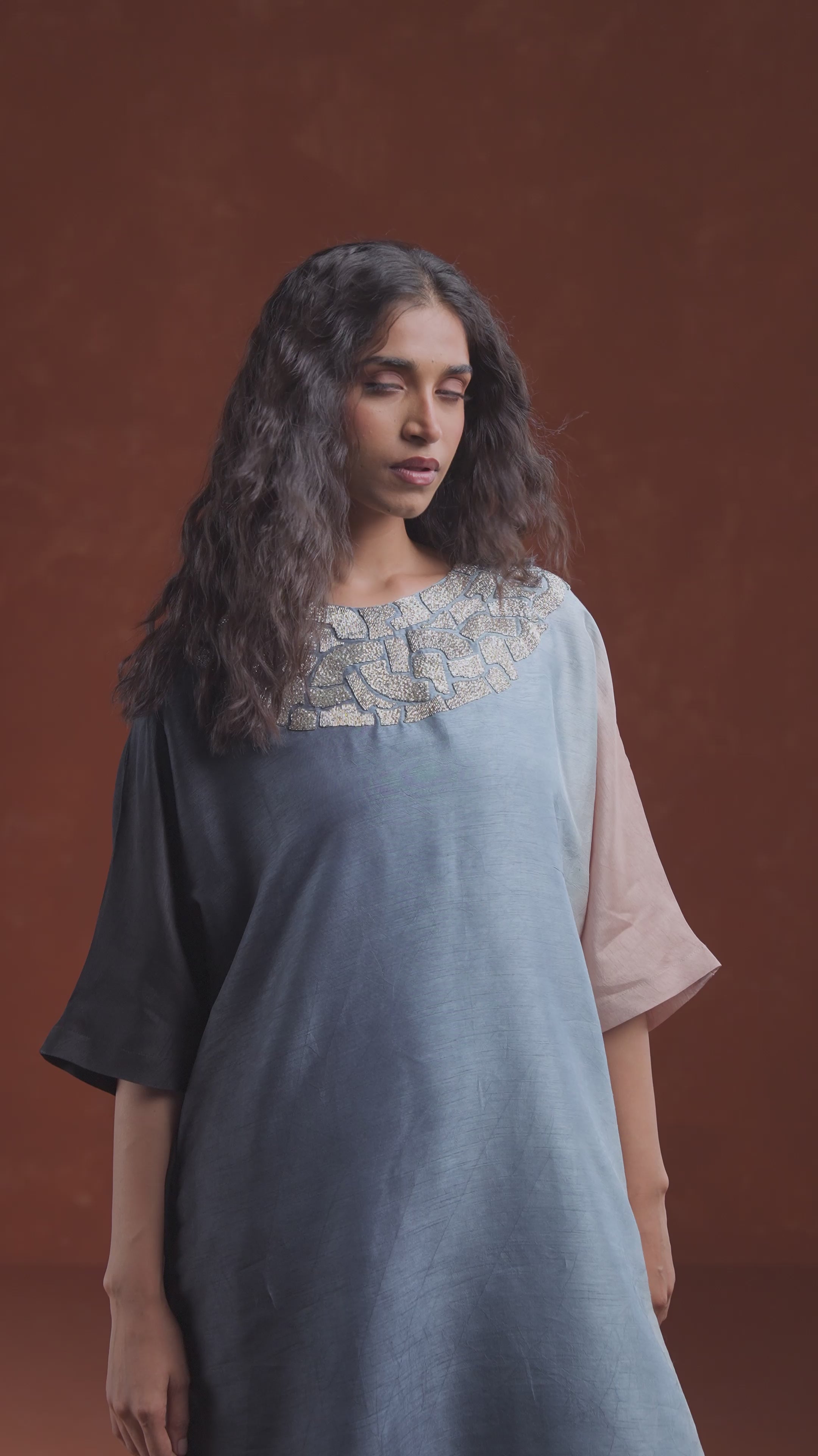 Navy Blue Embroidered Raw Silk Co-Ord Set